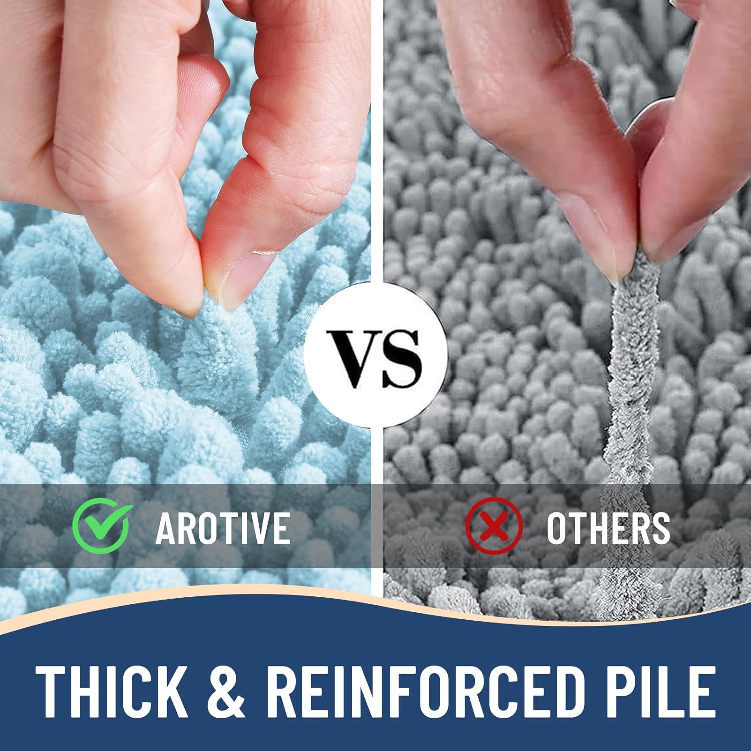 Arotive Luxury Chenille Bathroom Rug Mat, Extra Soft Thick Absorbent Shaggy Bath Rugs, Non-Slip Machine Wash Dry, Plush Bath Mats for Bathroom, Shower and Tub, 40x32, Blue