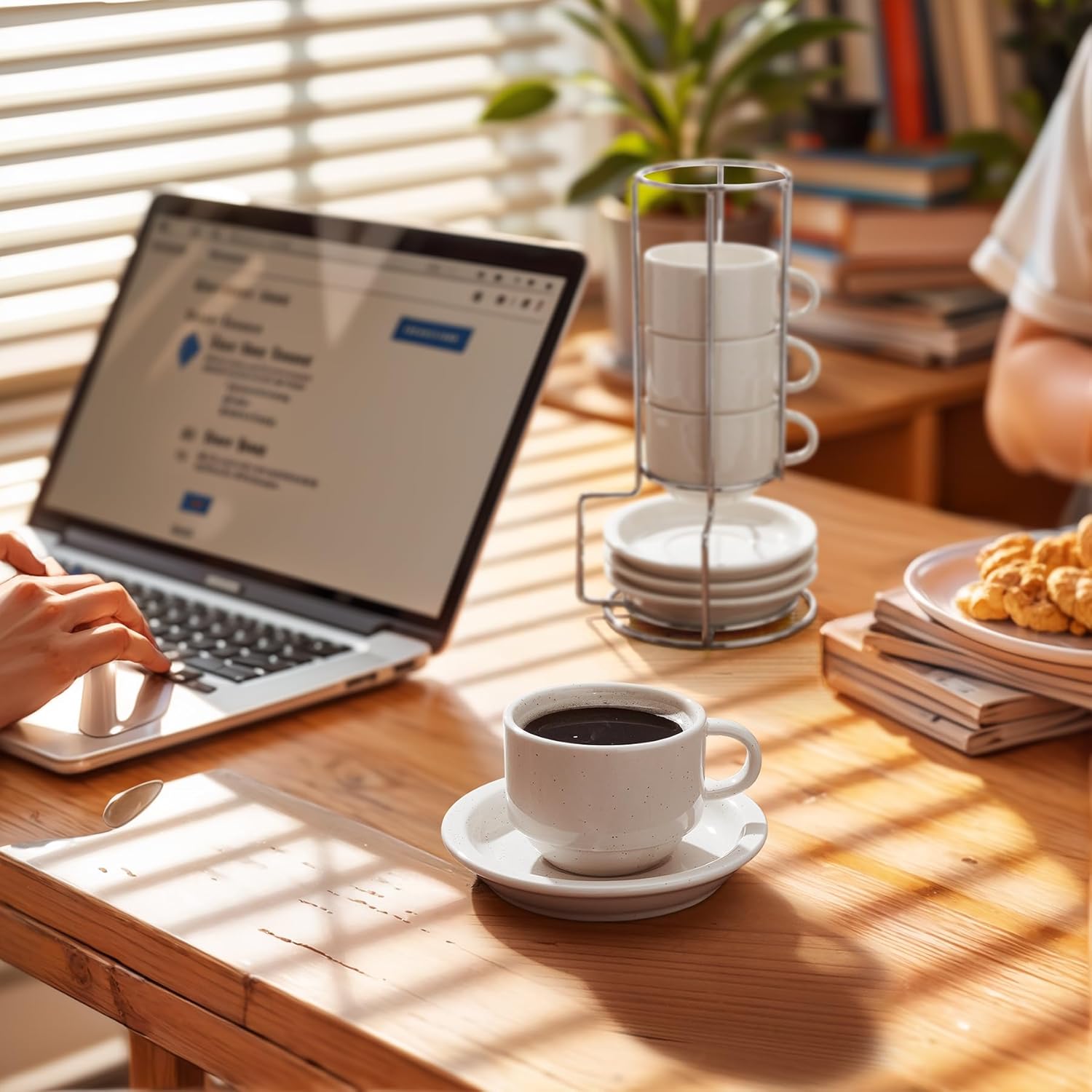 - SPACE-SAVING SOLUTION: Our stackable design with metal stand declutters your coffee corner, making it a masterpiece of efficiency and style.