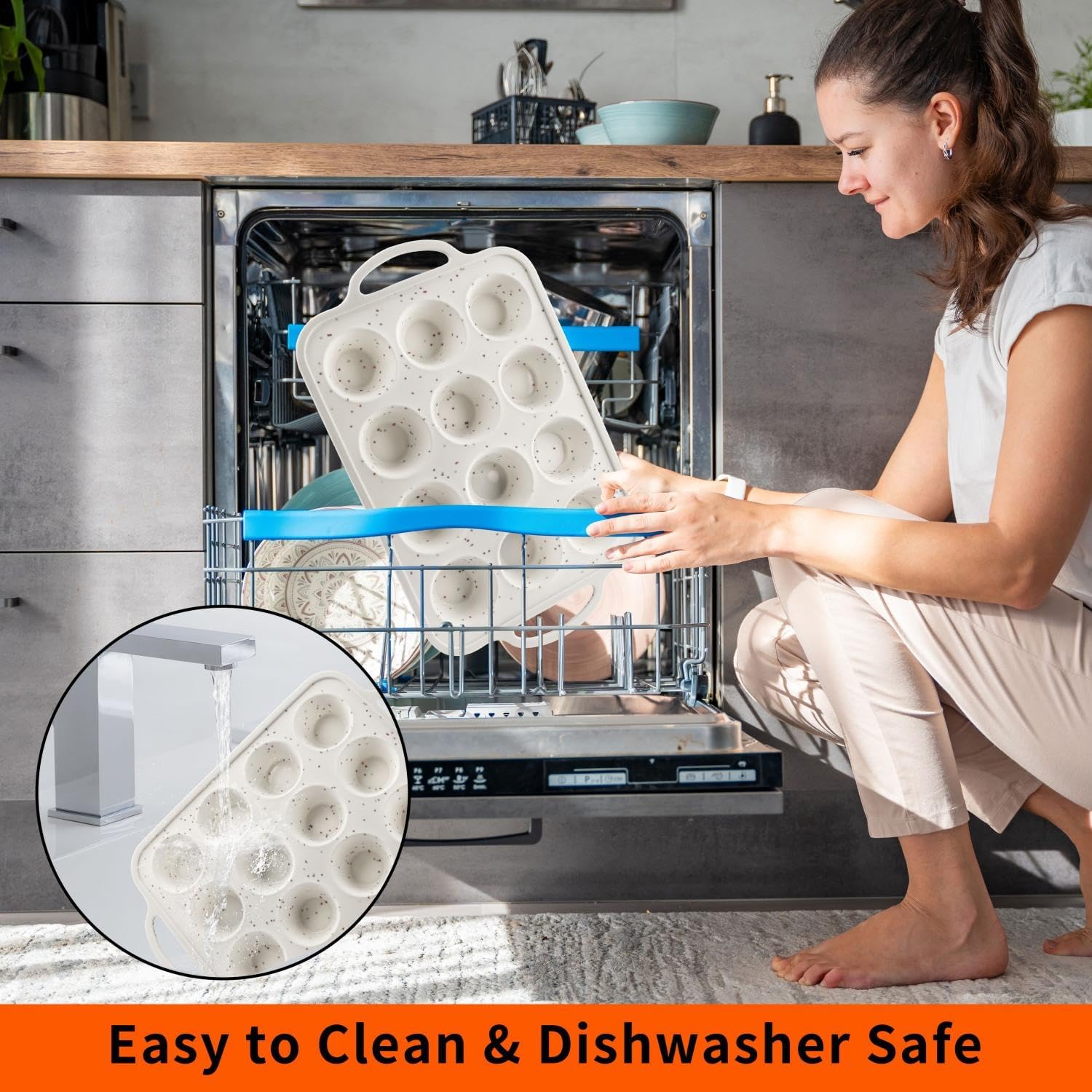 - 【Easy to clean& dishwasher safe】Due to the silicone material of the muffin pan itself, cleaning is very easy. Simply rinse with water or put it in the dishwasher. After cleaning, you can hang it on a hook to dry!
