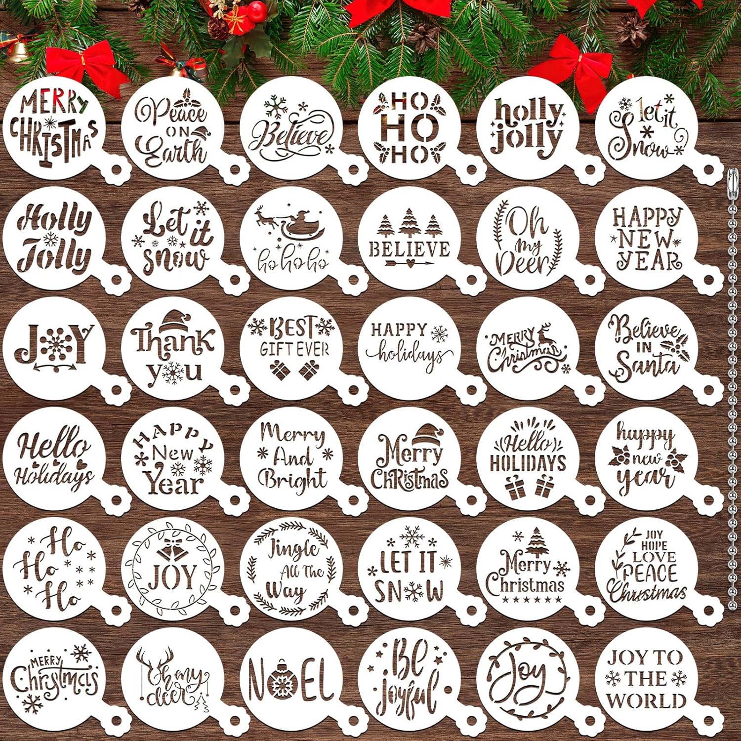 JULBEAR 36 Pieces Reusable Christmas Cake Stencils Templates Molds Tools for Christmas Holiday New Year Cookies Baking Painting Dessert Coffee Decoration