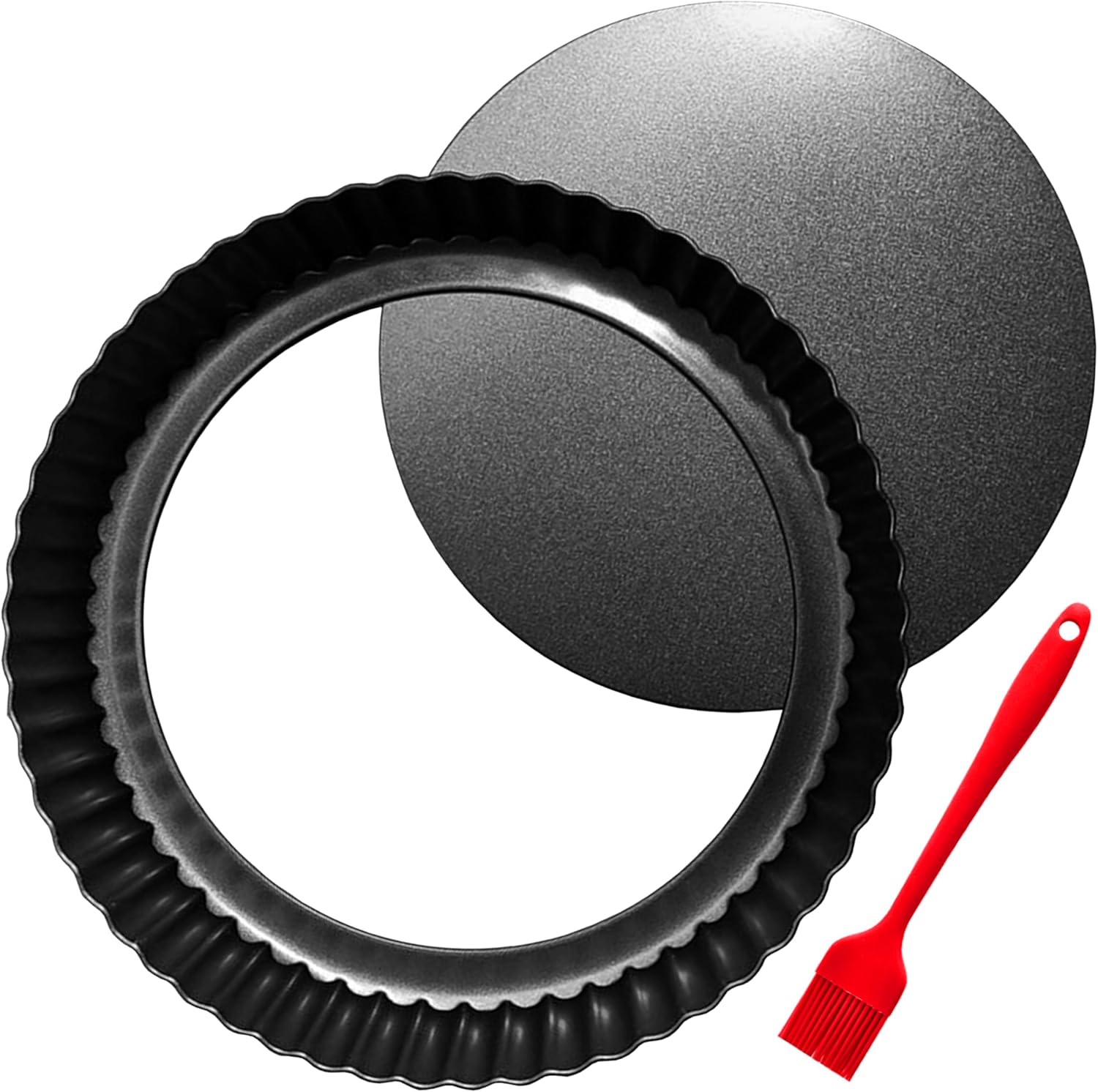 - 【What you will get】Package include 1 x 9 inch tart pan, 1 x silicone brush. The 9 inch tart pan with removable bottom is convenient to make creamy cheese cakes, apple tart pies, quiches, pizza and other delicious desserts in the oven. The silicone brush can help you to attach oil to the pan.