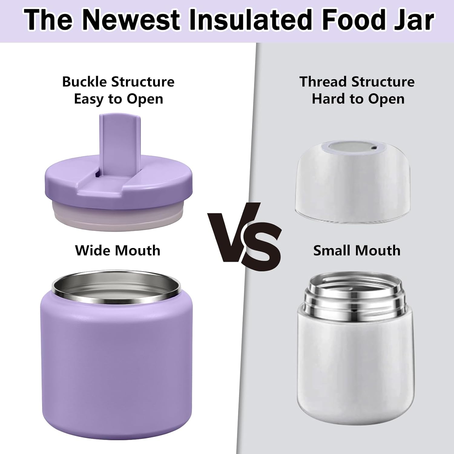 - Easy to Open: This thermos for hot food features a unique Buckle Structure design. Simply pull the handle to a 90° angle to easily open the lid. The handle is especially child-friendly, allowing little hands to open it with ease.
