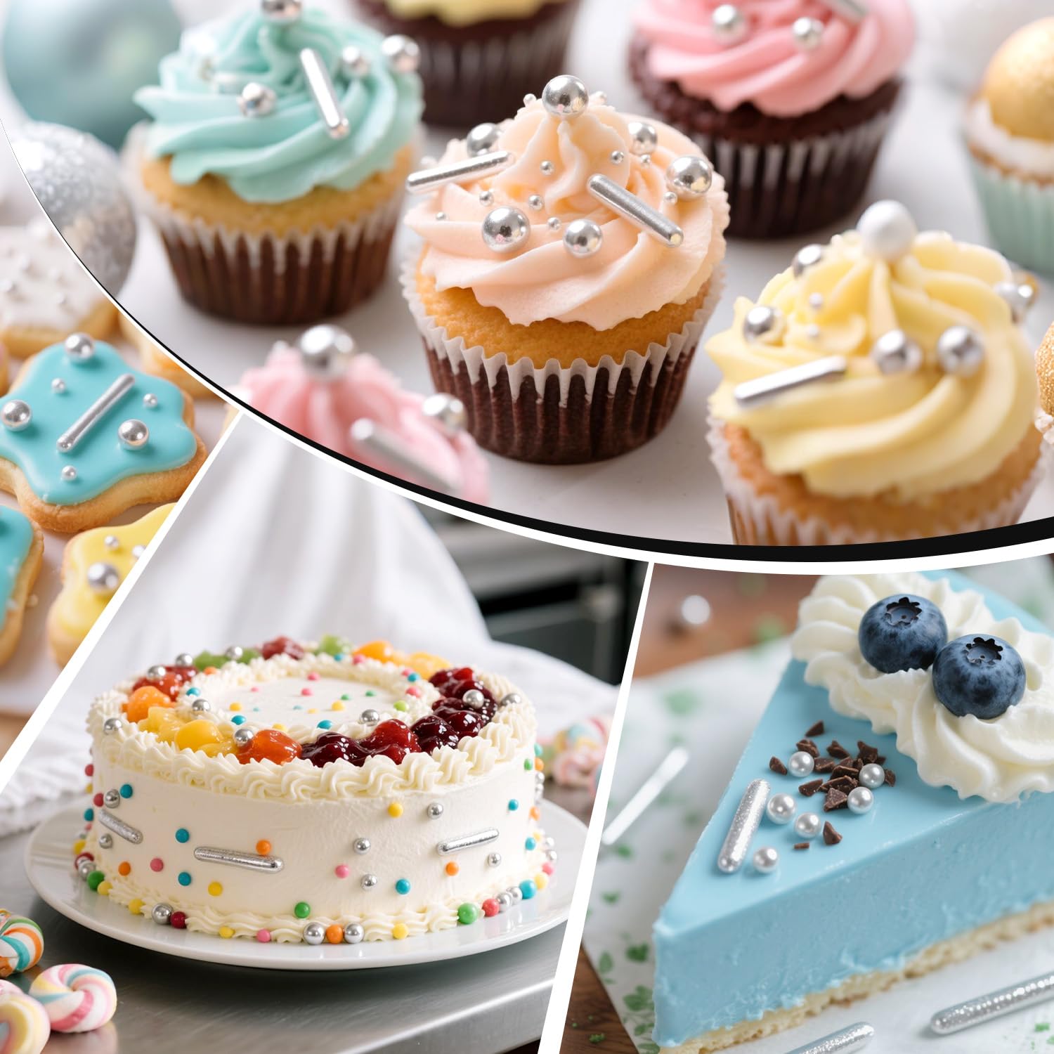 - Silver Pearl Rods Sprinkles are suitable for various occasions and party cake decoration, so that the party dessert is more exquisite, such as Mother's Day, Valentine's Day, Thanksgiving, Father's Day, Independence Day, birthday, wedding, all kinds of parties and ceremonies.