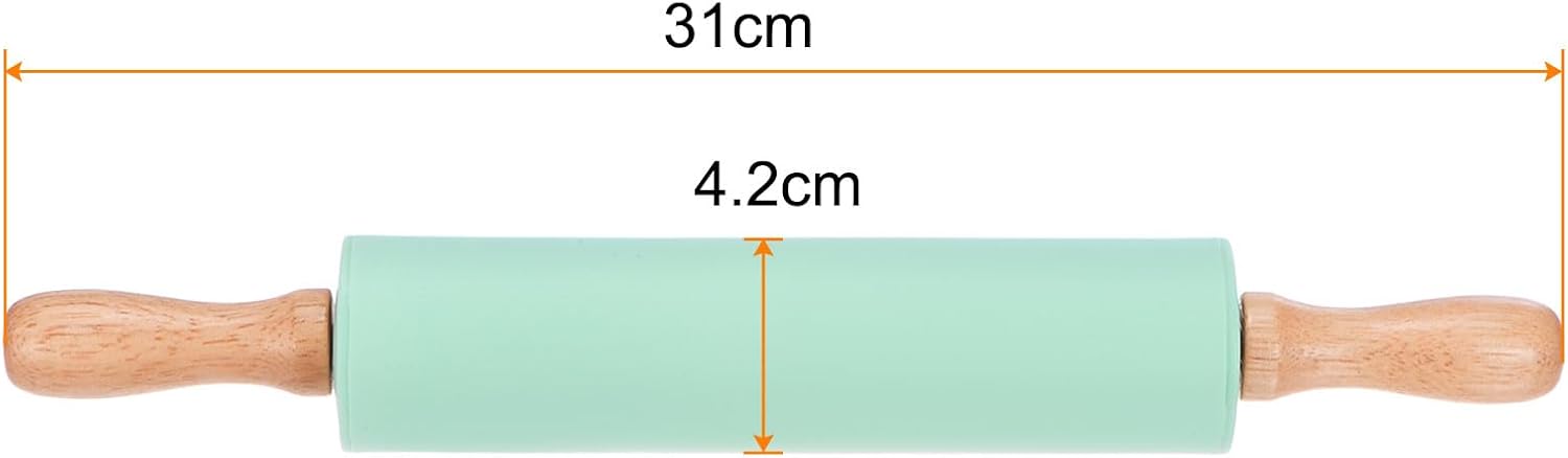 HARFINGTON Silicone Rolling Pins for Baking 12.2 Inch Non-Stick Silicone Surface Wooden Handle Rolling Pin Small Roller Playdough Rolling Pins for Fondant Kitchen Dough Pizza, Green