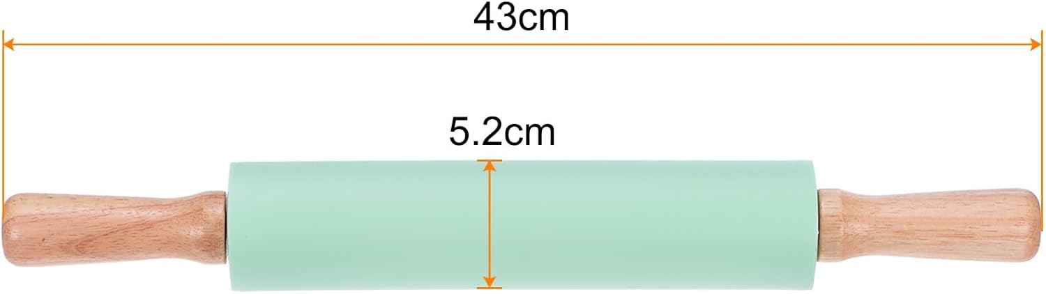 HARFINGTON Silicone Rolling Pins for Baking 16.93 Inch Non-Stick Silicone Surface Wooden Handle Rolling Pin Small Roller Playdough Rolling Pins for Fondant Kitchen Dough Pizza, Green