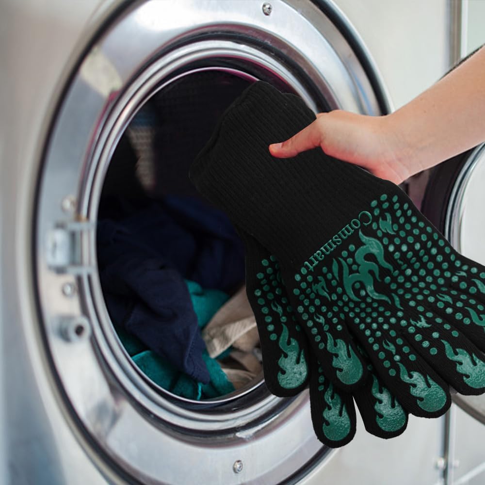 Comsmart BBQ Gloves, 1472°F Heat Resistant Grilling Gloves Silicone Non-Slip Oven Gloves Long Kitchen Gloves for Barbecue, Cooking, Baking, Short, Green