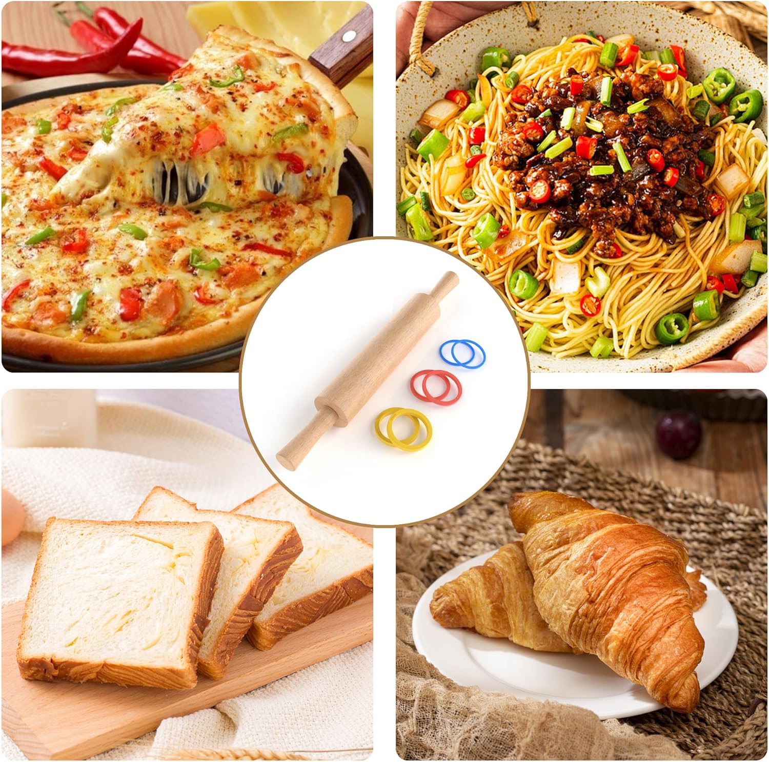 - 🍕Vibrant Rings: Included are 3 sets multi-color thickness rings that can be used as spacers or guides for achieving desired dough thickness.