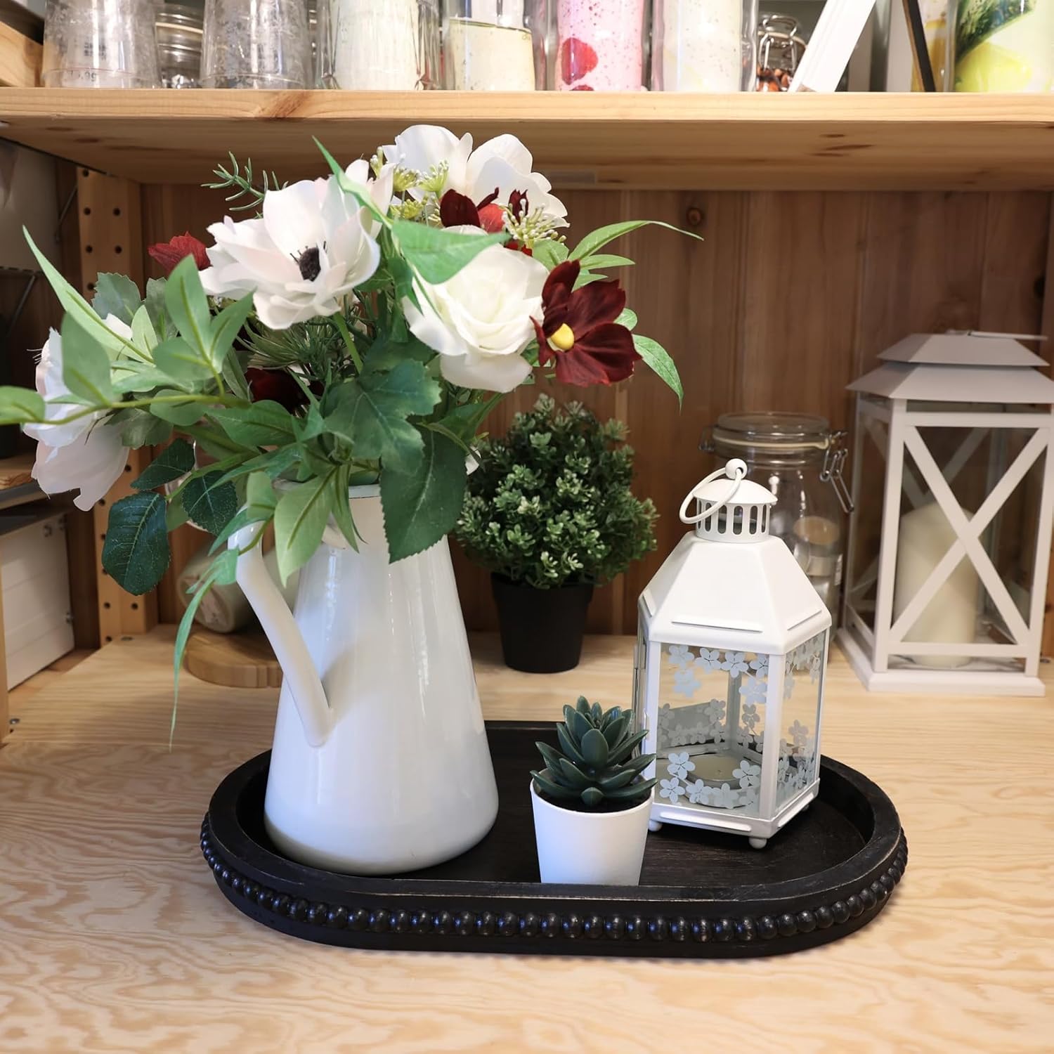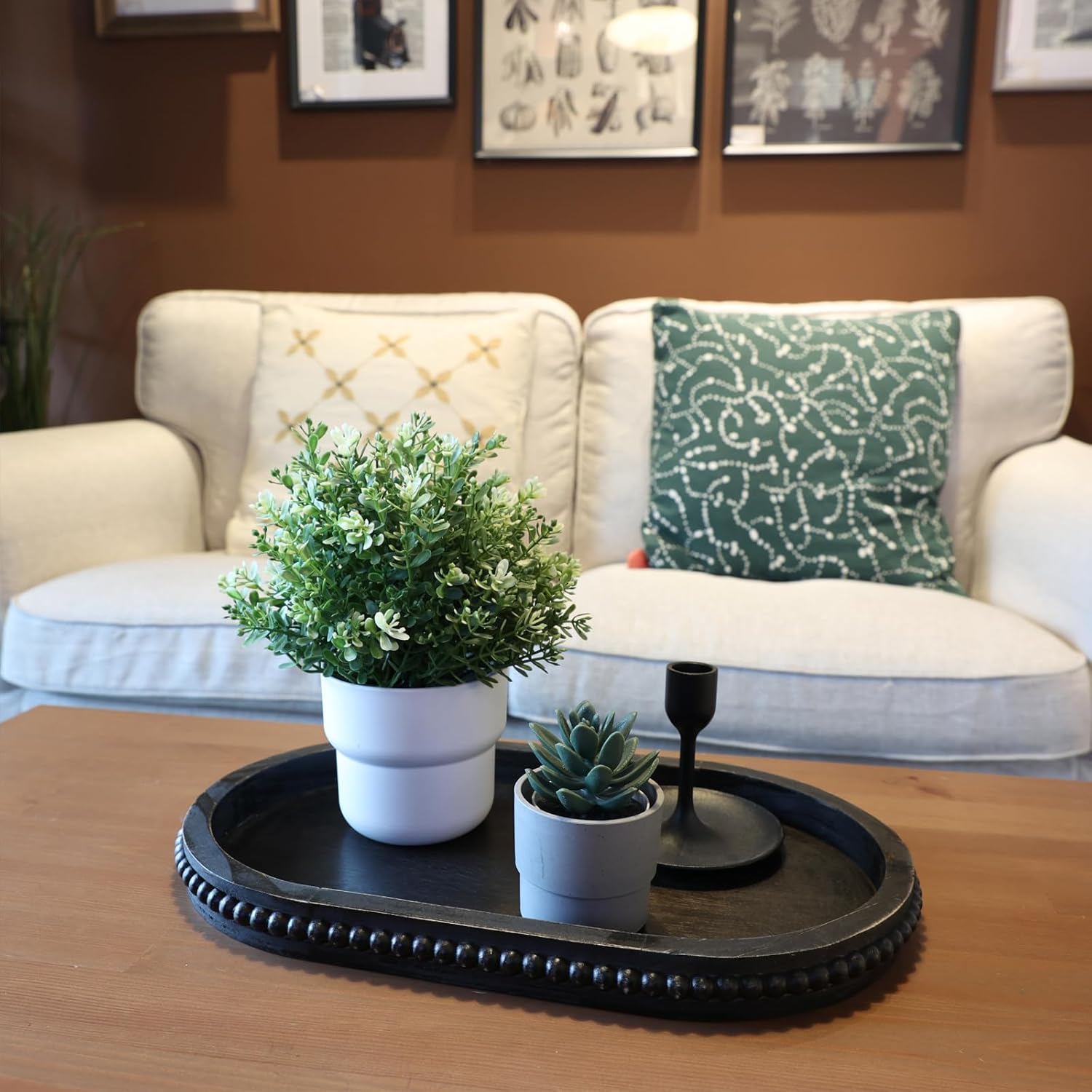 Vintage Black Oval Wood Decorative Ottoman Tray for Coffee Table Kitchen Counter, Living Room, Handcrafted Wooden Serving Tray for Table Centerpiece