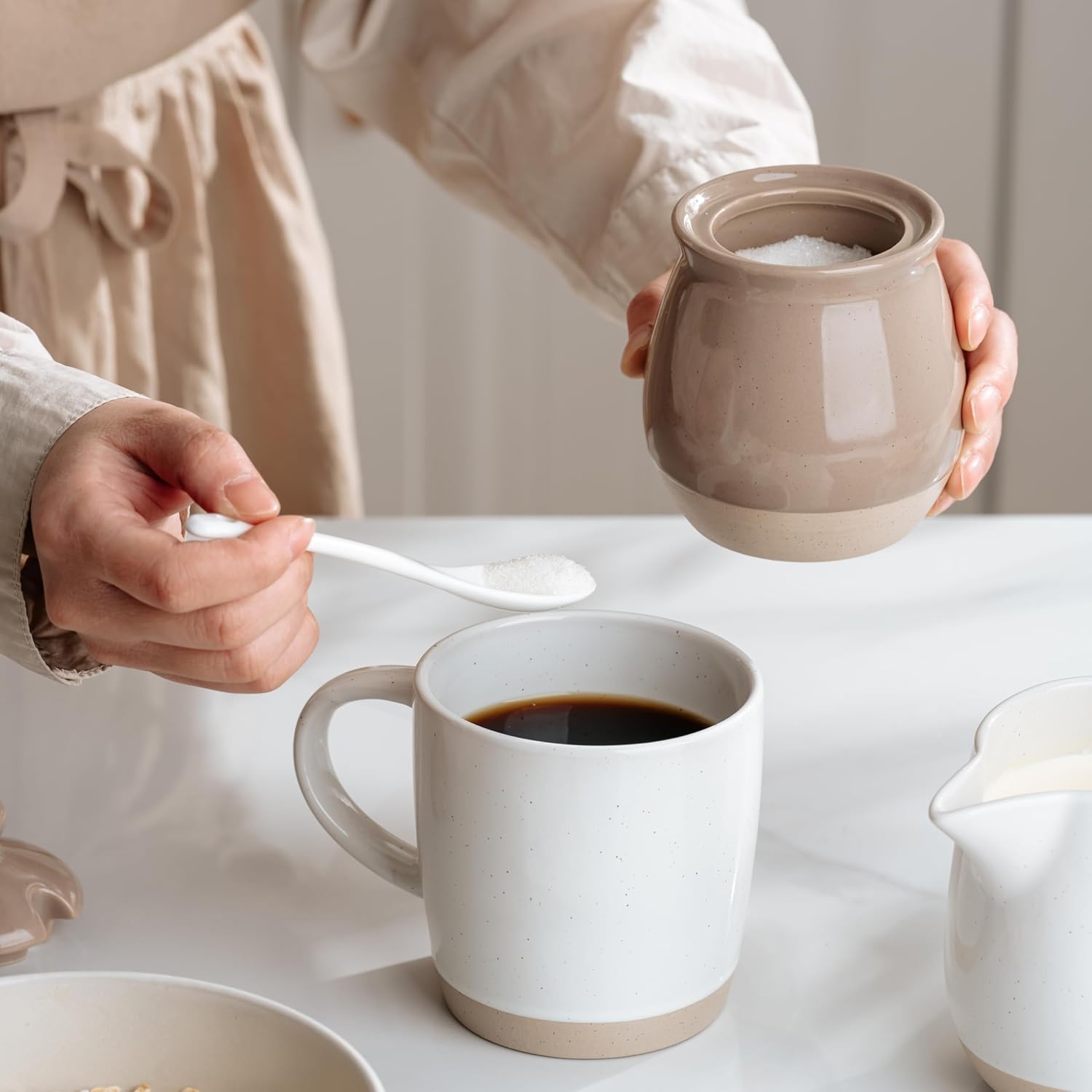 - Sleek Modern Design: Crafted from premium ceramic with a brown-speckled finish, this sugar bowl combines clean lines and a minimalist silhouette. The unglazed base adds a rustic touch, seamlessly blending into farmhouse, modern, or eclectic kitchens.