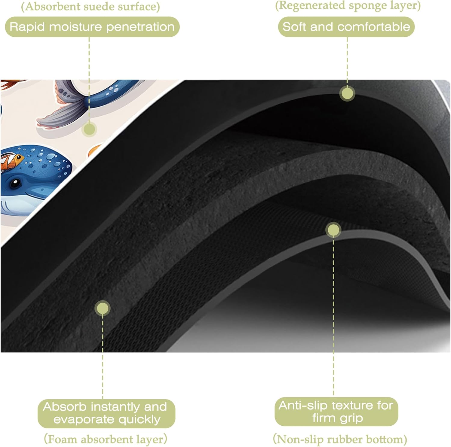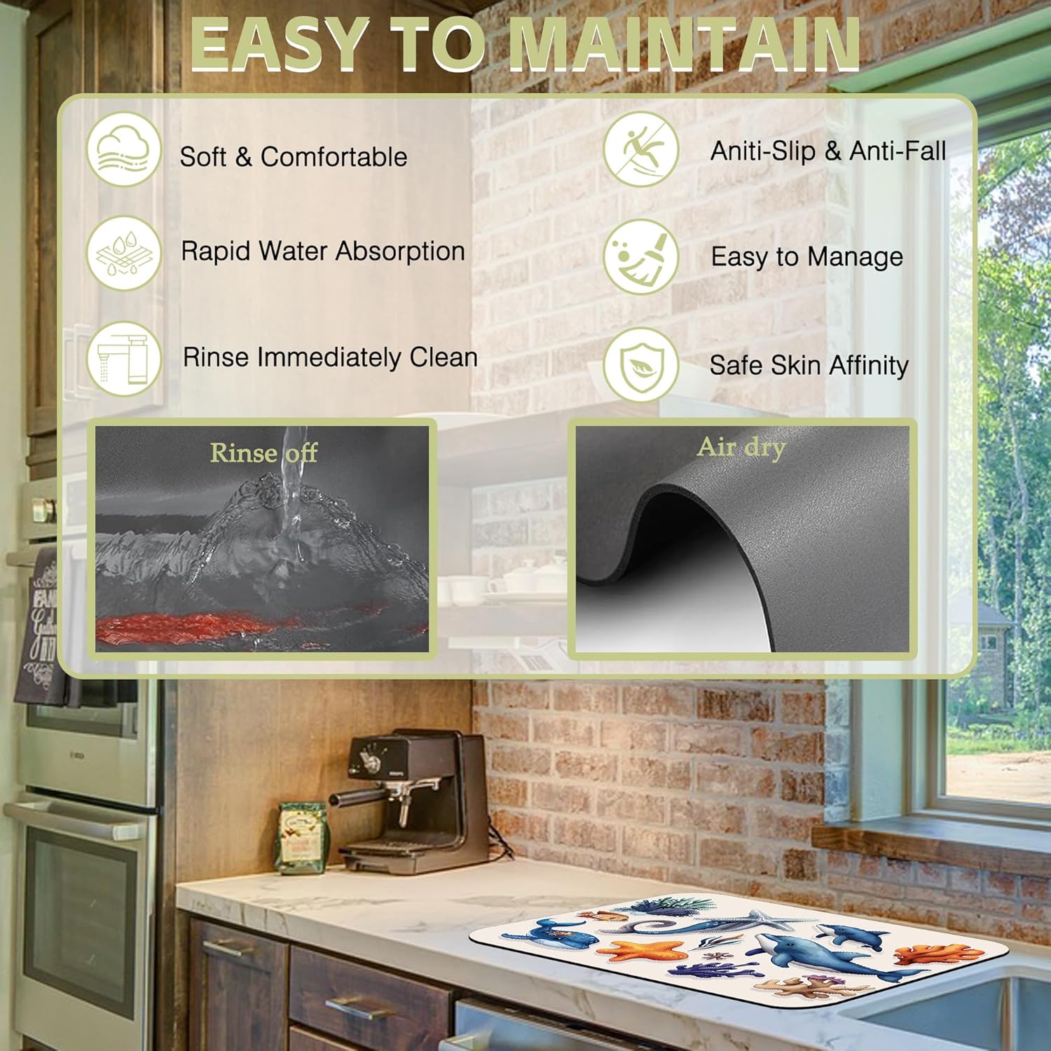 Sea Animals Dish Drying Mat Dolphins Starfish Anemones Kitchen Mat 12"x19" Bsorbent Coffee Maker Mat for Dishes,Utensils Coffee Maker Pots and Pans Easy Clean Dish Slip Resistant Pad