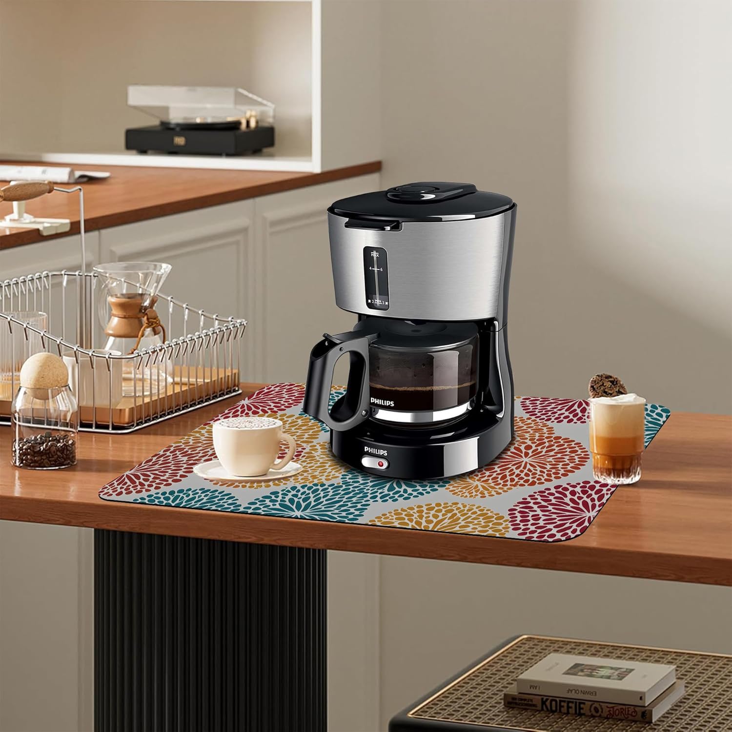 Abstract Floral Elements Dish Drying Mat Artifical Floral Kitchen Mat 16"x24" Bsorbent Coffee Maker Mat for Dishes,Utensils Coffee Maker Pots and Pans Easy Clean Dish Slip Resistant Pad