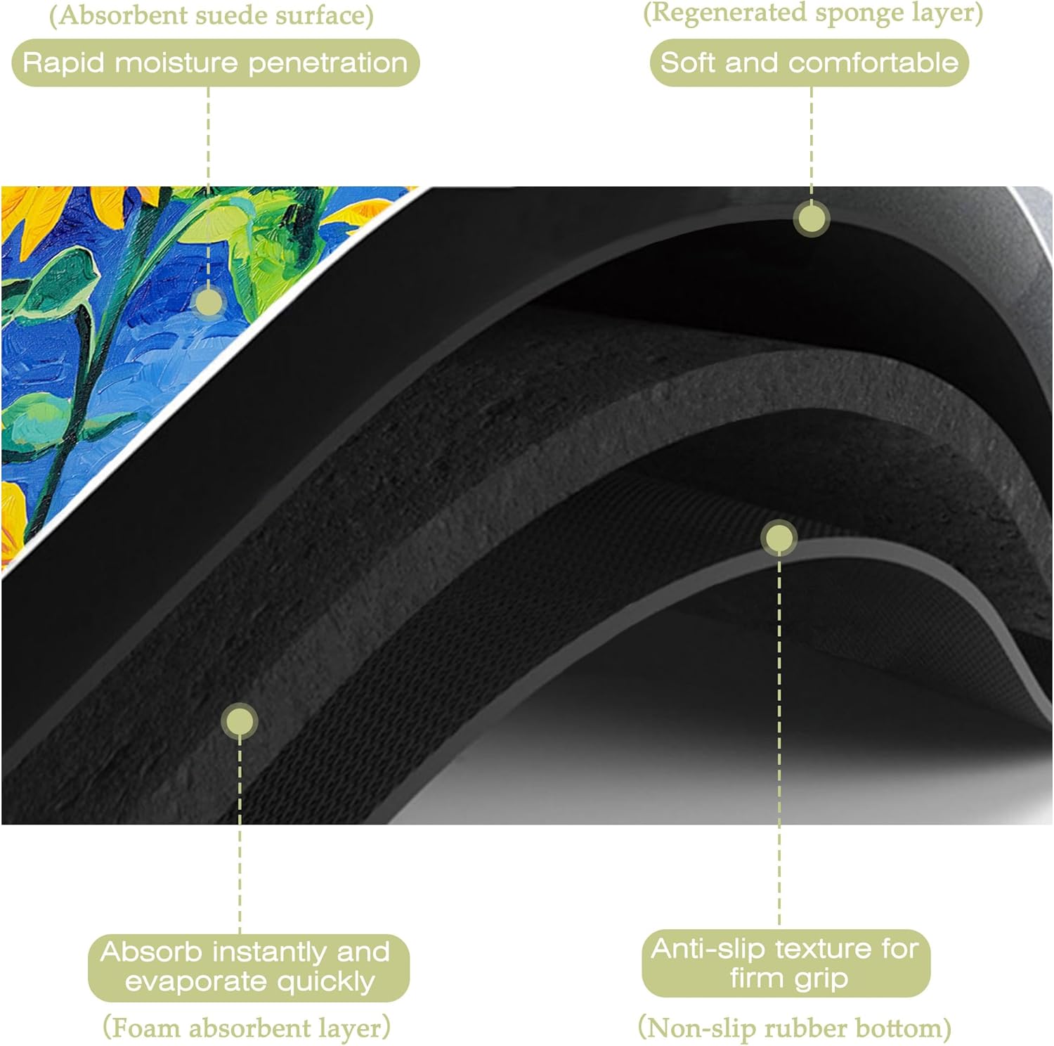 Kitchen Mat Oil Painting Sunflowers Dish Drying Mat 12"x19" Bsorbent Coffee Maker Mat for Sink Dishes or Under Rack Kitchen Counter Accessories Absorbent Hide Stain Rubber Backed Dish Drying Pad