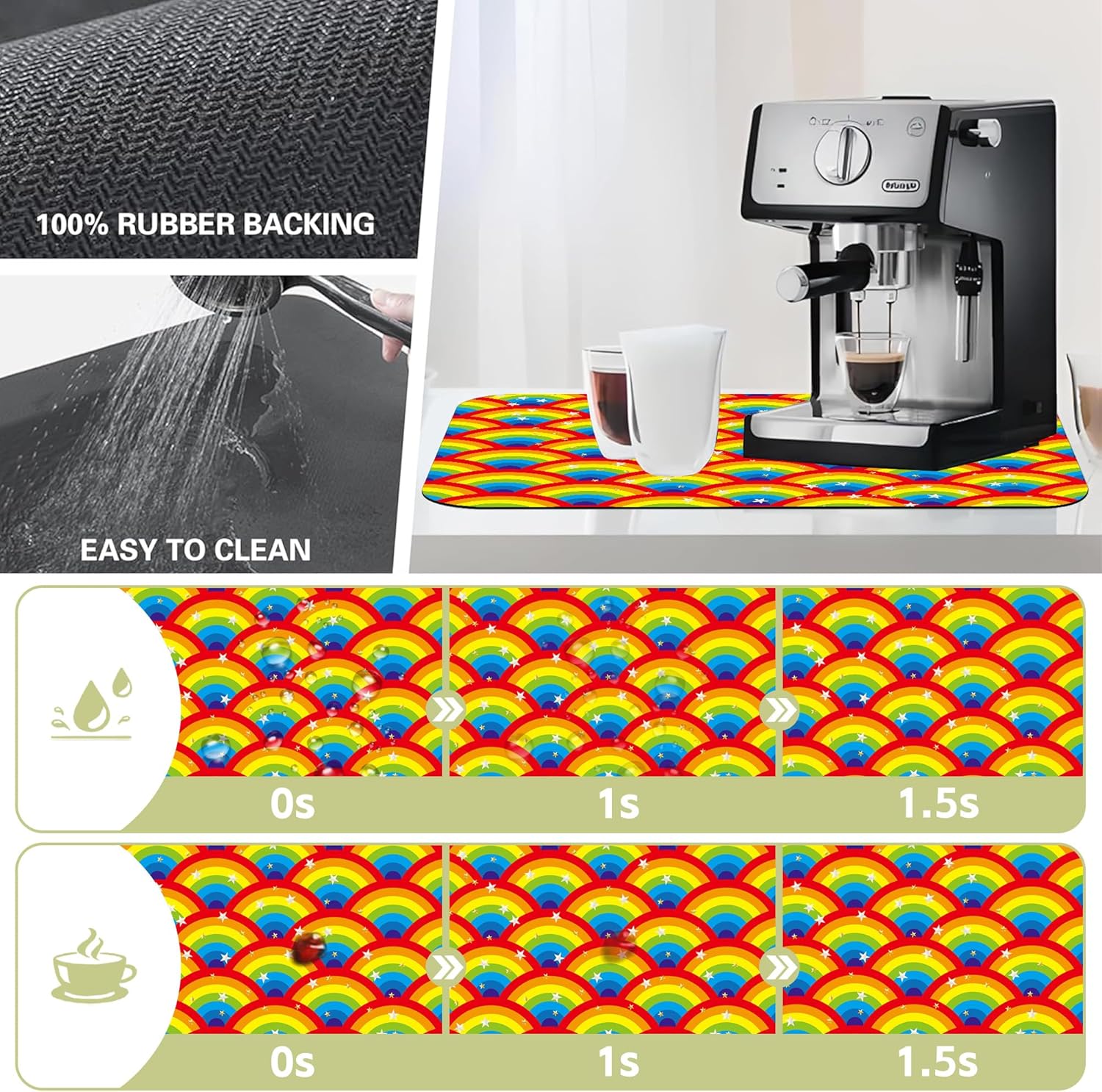 Kitchen Mat Rainbow Half Circle Star Dish Drying Mat 16"x24" Bsorbent Coffee Maker Mat for Sink Dishes or Under Rack Kitchen Counter Accessories Absorbent Hide Stain Rubber Backed Dish Drying Pad