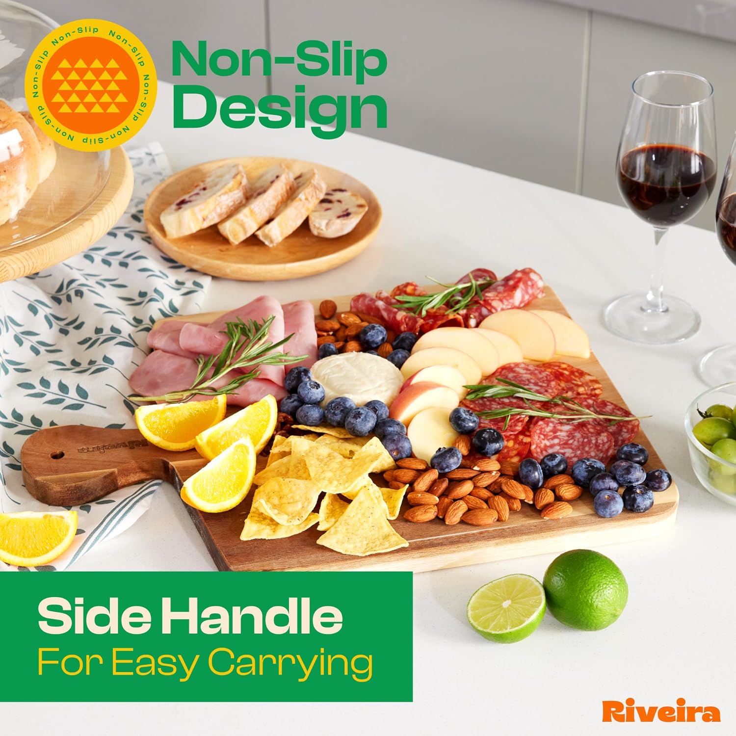 - Handle Everything with Confidence — The built-in handle holds of the acacia boho kitchen cutting boards are designed for handling everything with confidence and easy maneuvering. Pre-oiled and ready for immediate bewilderment, this acacia wood tray is not just convenient for the kitchen mess but has a unique design to maintain, ensuring a performance that is both comfortable and clean for large cutting board wood. Riviera square cutting board will be perfect in your kitchen.