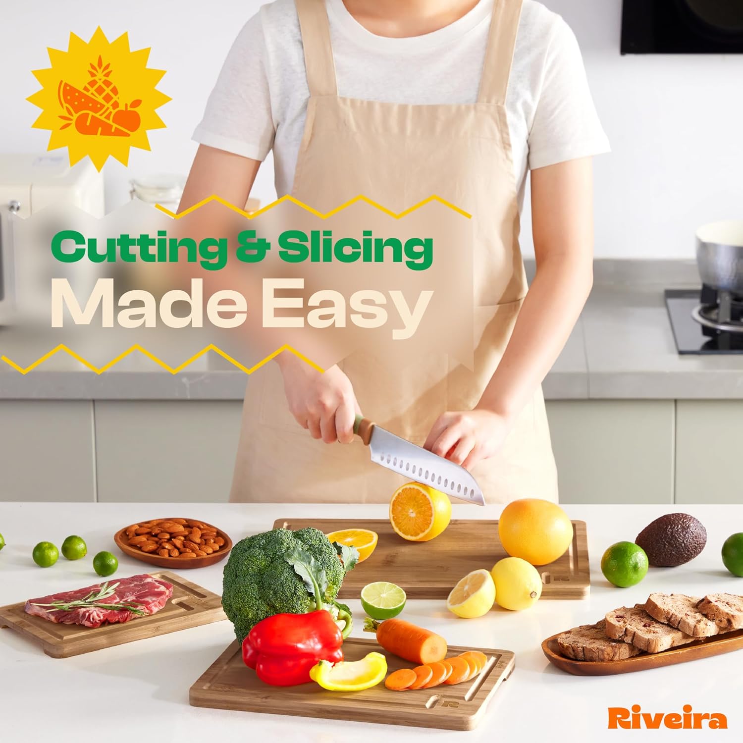 Riveira Brown Bamboo Wood Cutting Board – Gourmet Bamboo Grandeur: 20 x 14 Wooden Cutting Board – Wooden Cutting Boards For Kitchen Decorative – Innovative Juice Grooves Wooden Chopping Board