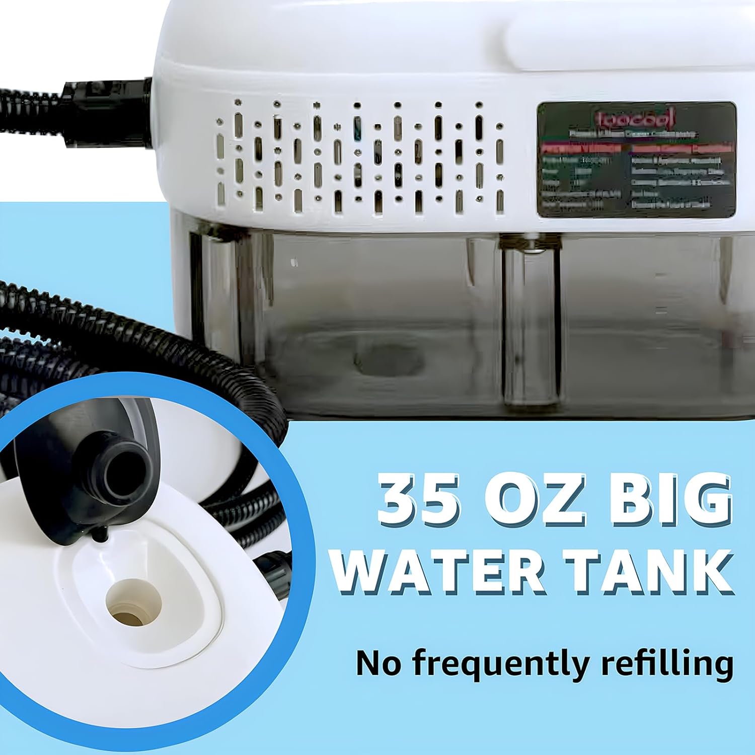 - 1.1L LARGE WATER TANK: The deep steam cleaner is equipped with a 1.1L water tank, saying goodbye to the trouble of frequent water filling, allowing you to focus on cleaning. the steam cleaner for car adopts a funnel-shaped water filling port design, which allows you to easily add water by simply lifting the top cover. the pressurized handheld steam cleaner has a convenient drainage hole at the bottom to ensure cleaning efficiency.