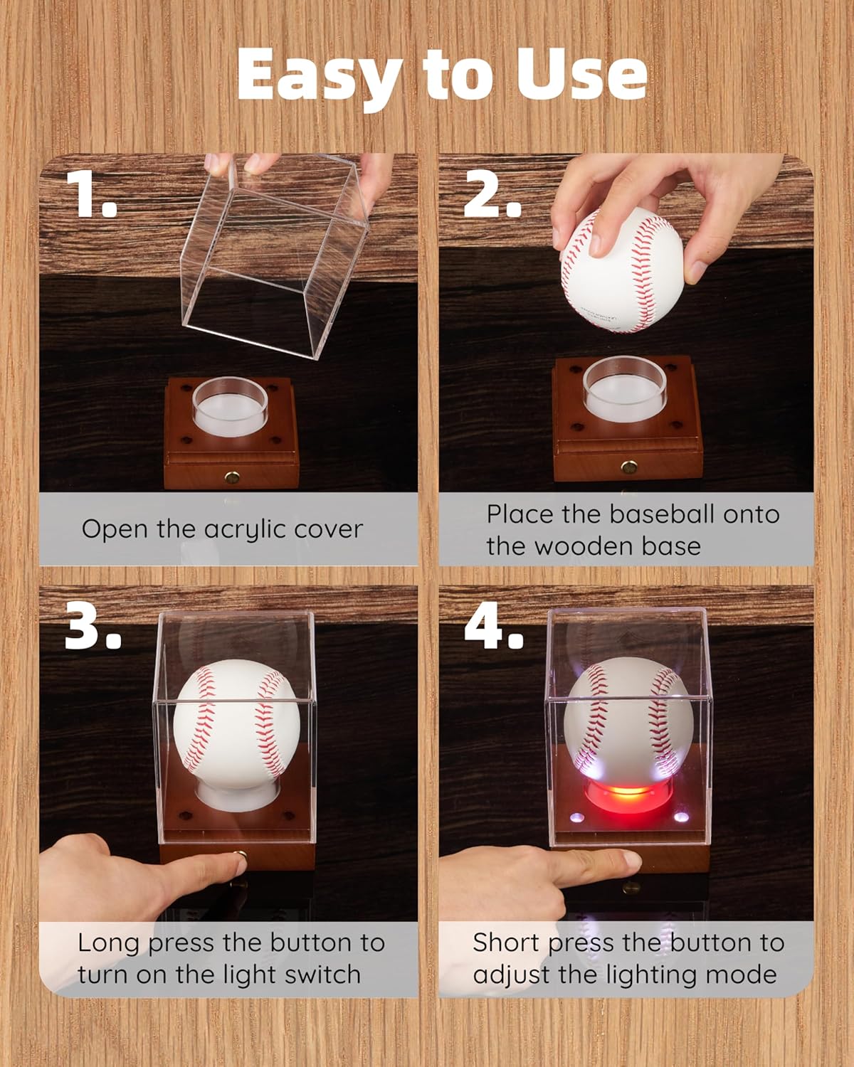 - Memorable Gift: The baseball box display case comes complete with a Solid Wood base, acrylic cover, acrylic stand, and a type-C data cable, making it an ideal gift for family members, friends, classmates, colleagues, as well as club fans and sports enthusiasts who love baseball. It's a excellent choice for occasions like Father's Day, Christm