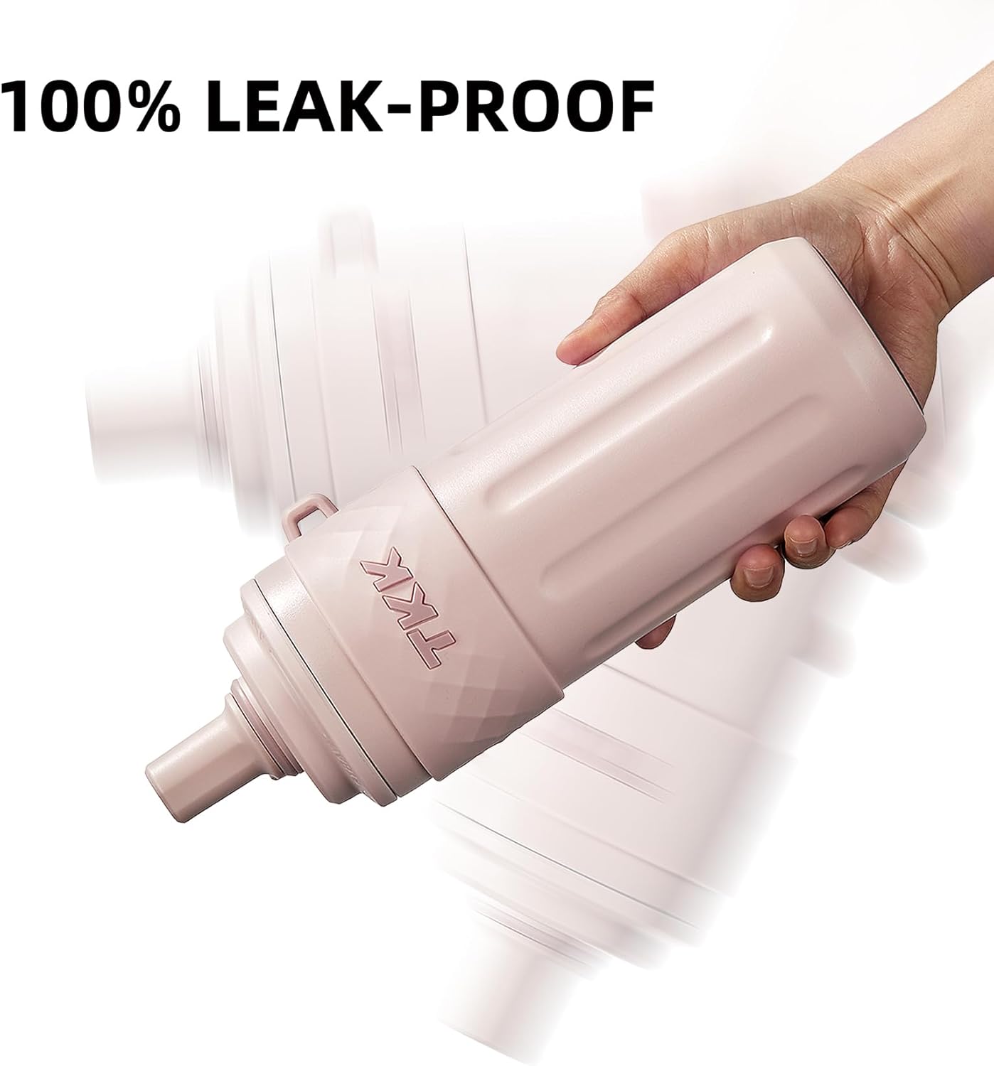 TKK 17 OZ Travel Tumbler Ceramic Lining with Straw Lid, Stainless Steel Vacuum Insulated Double Wall Coffee Tumbler, Leak Proof Iced Water Bottle with Carry Strap for Hot & Cold Drinks, Pink