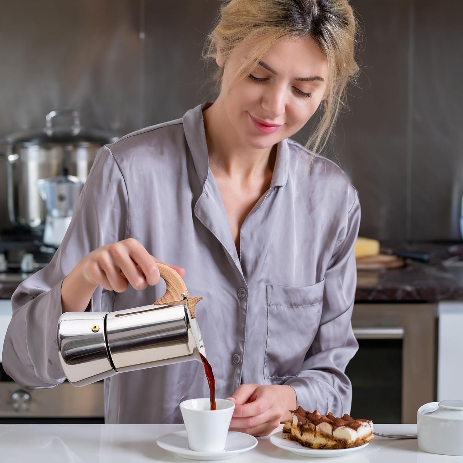 - Efficient Brewing: With a 6-cup/300ml capacity, this moka pot allows you to brew strong, flavorful espresso or coffee quickly and efficiently.