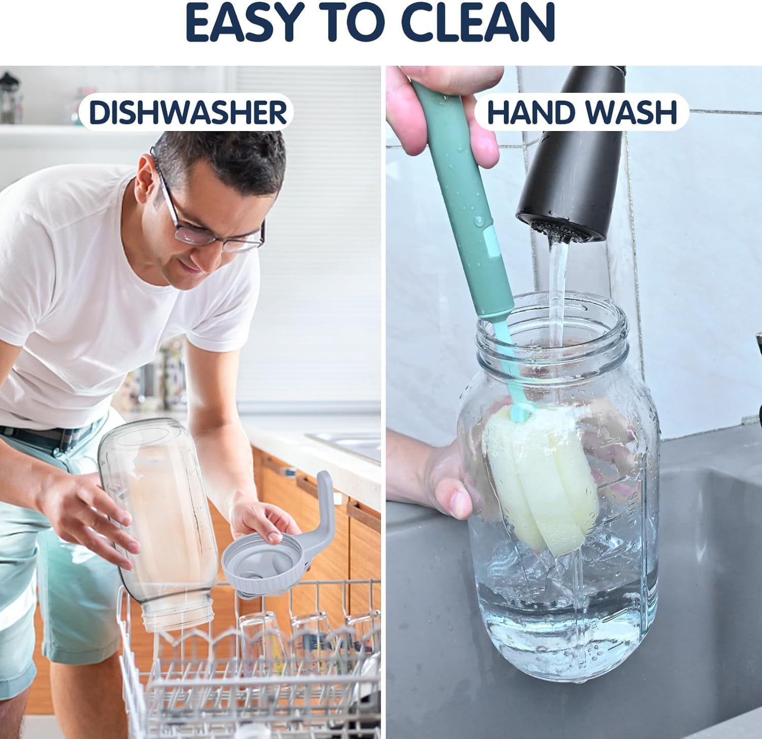- EXCELLENT & EASY TO CLEAN: Made of heavy duty and premium quality glass, the pithcers are durable and provides reliable use for years to come.The wide mouth allows your hand to easily reach into the jug, and the design with no blind spots, coupled with the included brush, makes cleaning easy.