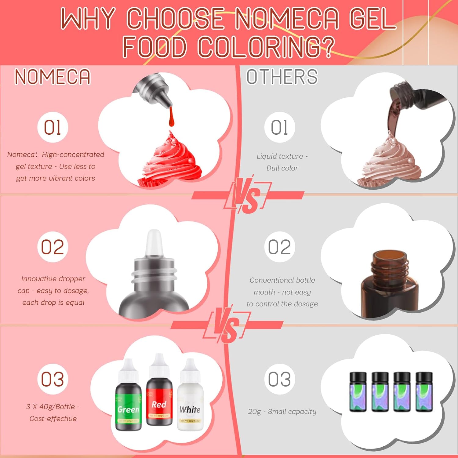 - Vibrant Colors for Cake Decoration - There are 3 richly pigmented gel food coloring you'll get, including Christmas red, Christmas green, and white, each color is a unique and have 40g large capacity for your baking needs to create eye-catching cakes. You can mix different colors to create your custom colors for different needs