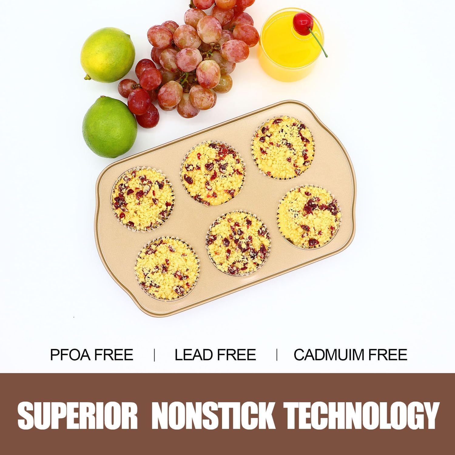 - 【6-CUP JUMBO MUFFIN PAN SET】2 Pack extra large muffin pans (3.5inch dia) with champagne gold coating. Stackable design saves storage space, perfect for baking jumbo cupcakes, egg bites & cheesecakes.