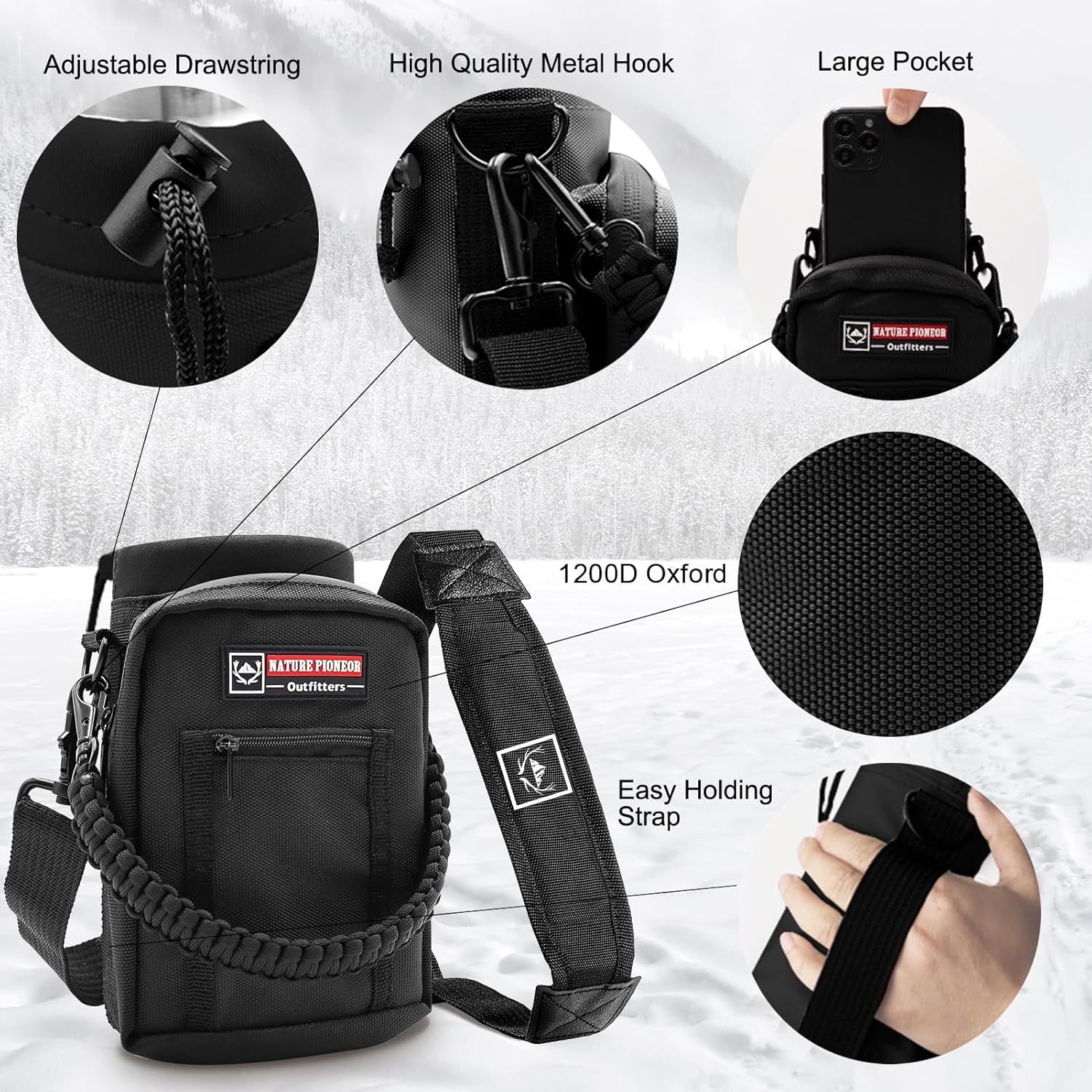 NATURE PIONEOR Insulated Water Bottles with Carrier Holder Sleeve - 32 ounce Stainless Steel Water Bottle with 3 Lids,straw,Keeps Hot and Cold