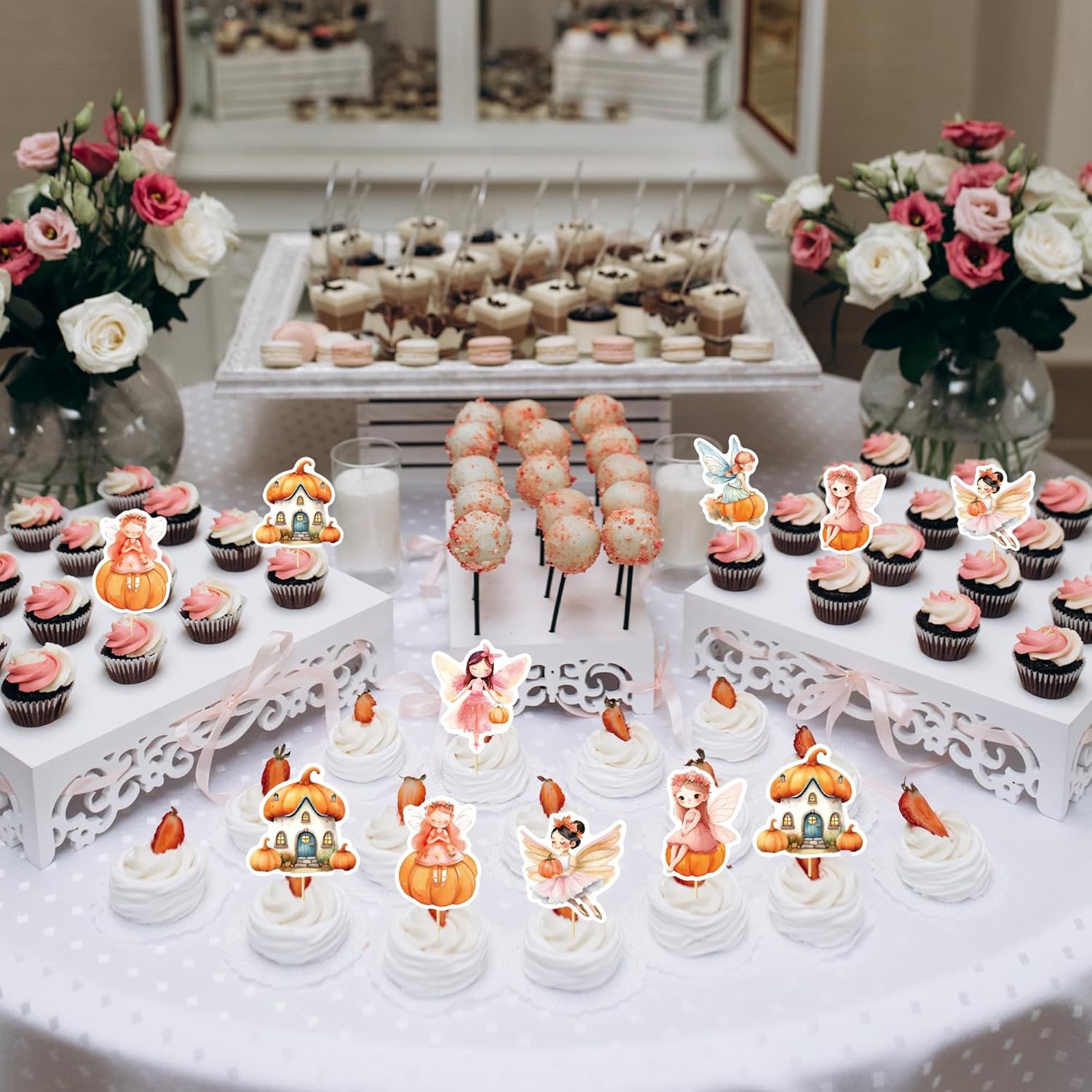 24Pcs Pumpkin Cupcake Toppers Flower Fairy Pumpkin Cupcake Picks Fall Harvest Theme Thanksgiving Baby Shower Party Supplies