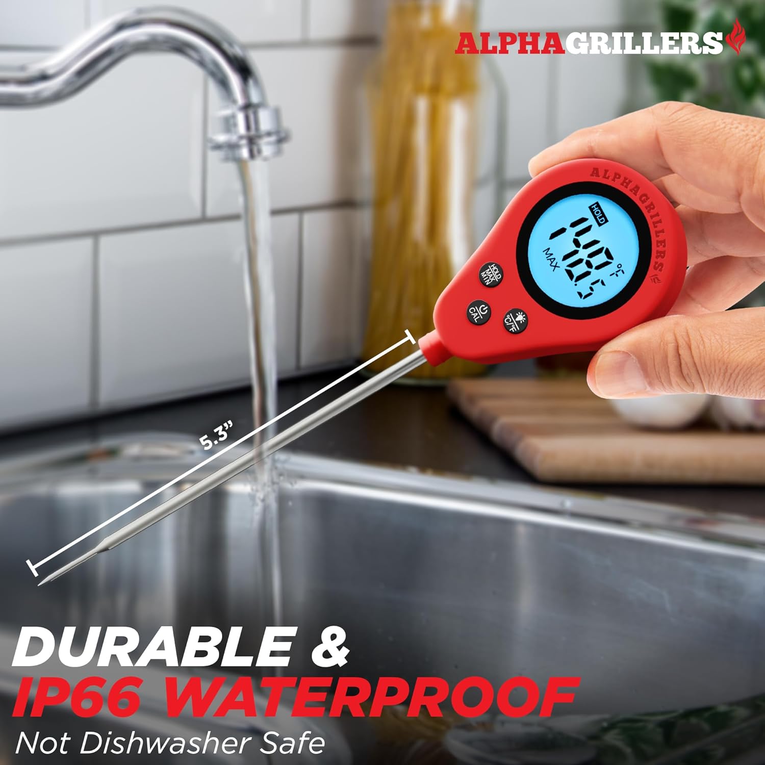 Alpha Grillers Instant Read Meat Thermometer Digital Food Thermometer for Cooking Grilling Bread Baking Liquids and Air Fryer with Temperature Guide, Long Probe and Large Backlit Display