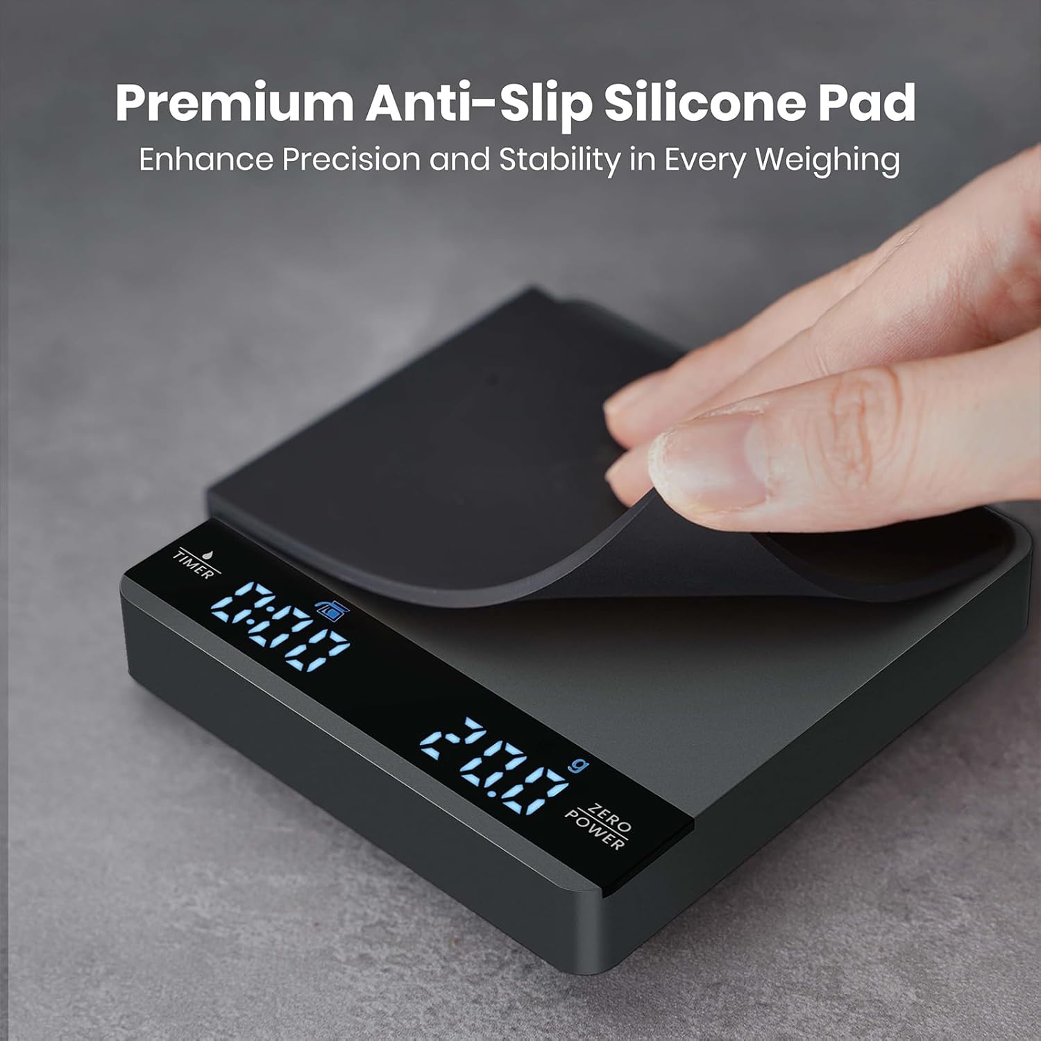 - 【Minimalist Design & Premium Durability】Crafted from high-quality aluminum and heat-resistant silicone, the Maestri House digital coffee scale boasts a sleek, modern design built for durability. The invisible LED display and hidden touch controls enhance its minimalist look, while the surface is waterproof, scratch-resistant, and easy to clean. Designed to be non-slip and heat-insulating, it also features removable silicone pads to protect the scale and provide stability during use