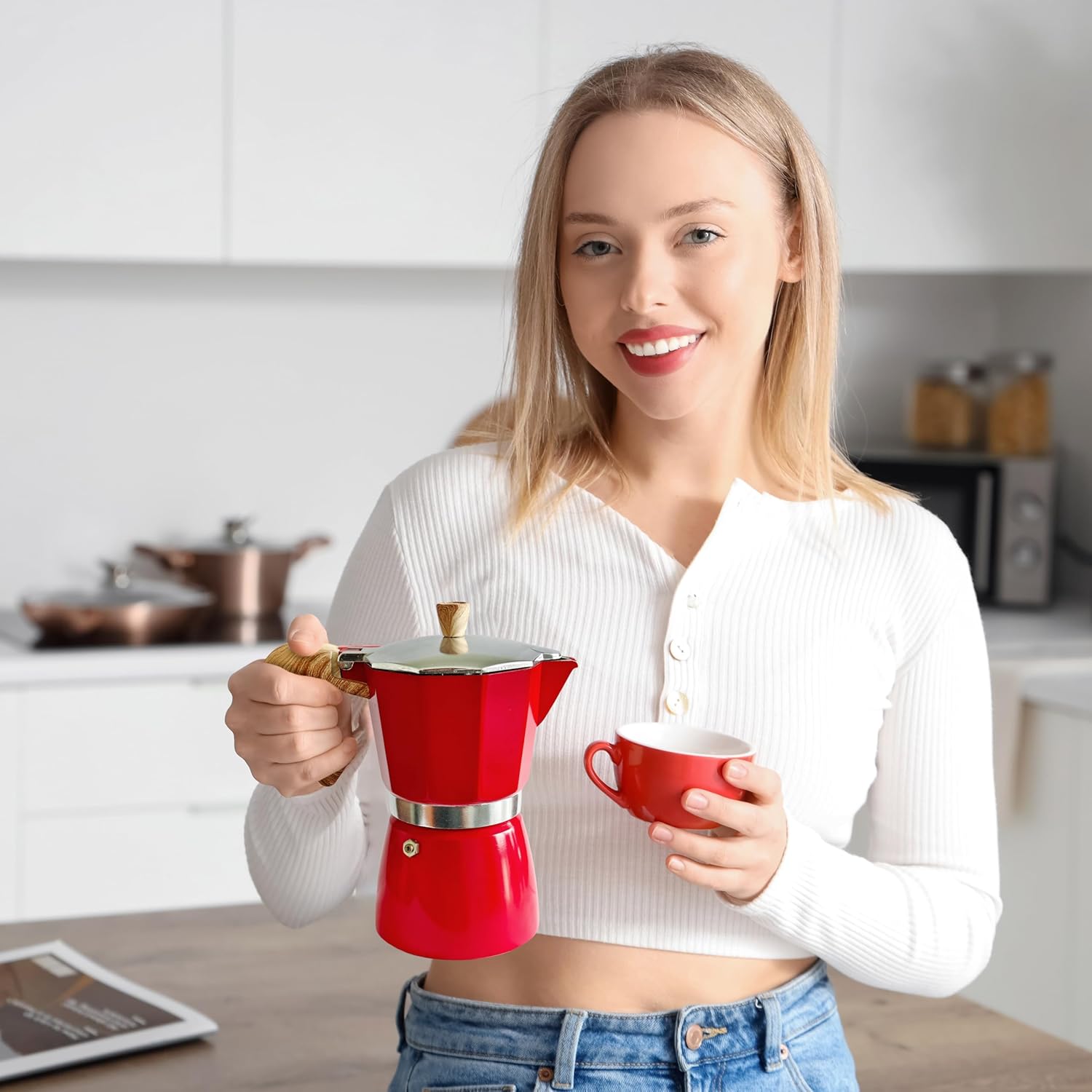 AGOGO Milano Moka pot, Stovetop Espresso maker, Greca Coffee Maker, Stovetop coffee maker and espresso maker percolator With Paper Filter 6 Cup Red