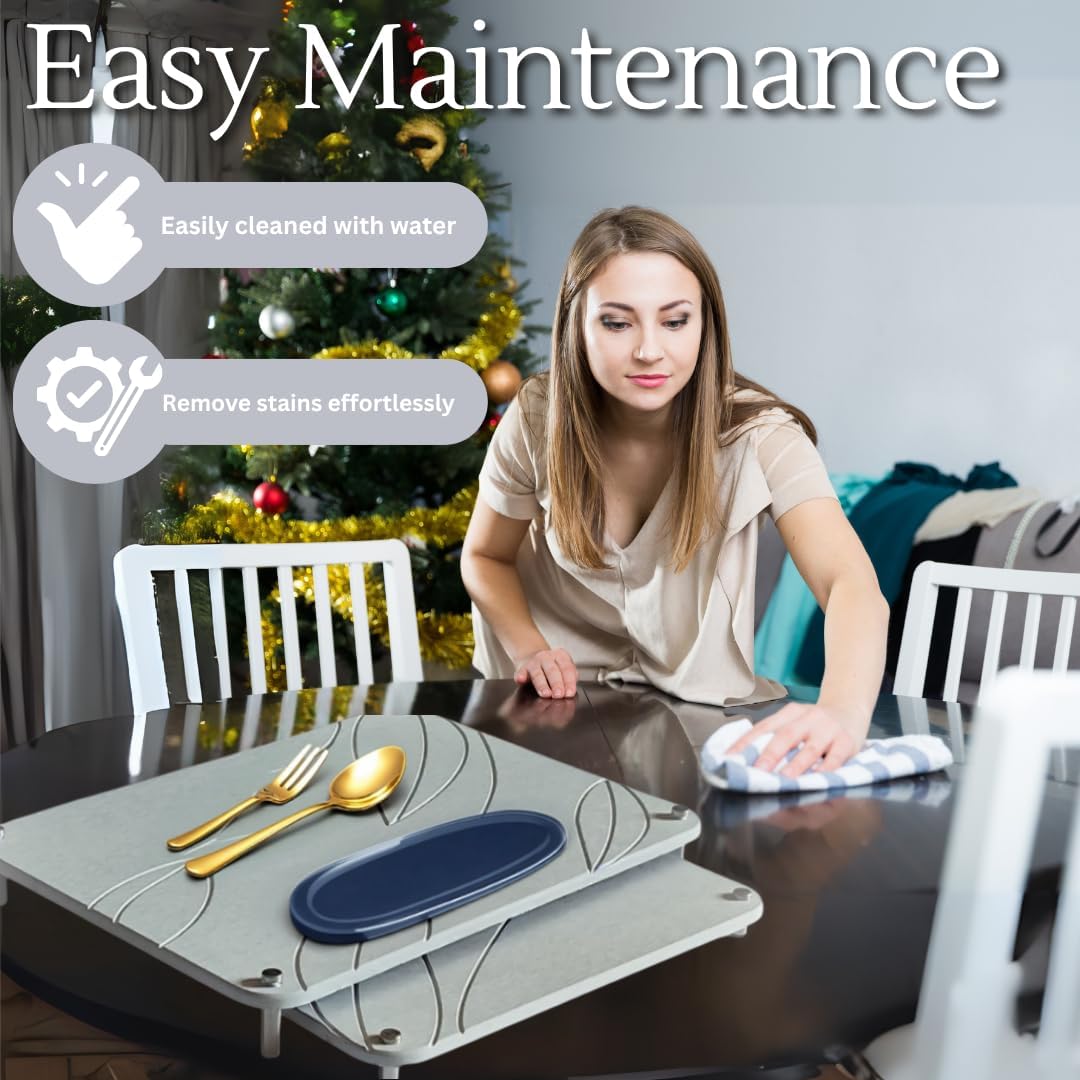 - ✅ Super Absorbent & Fast Drying : Say goodbye to soggy towels and cluttered sink areas. Our diatomaceous earth drying mat instantly absorbs water and dries within minutes—keeping your countertop clean and dry at all times.