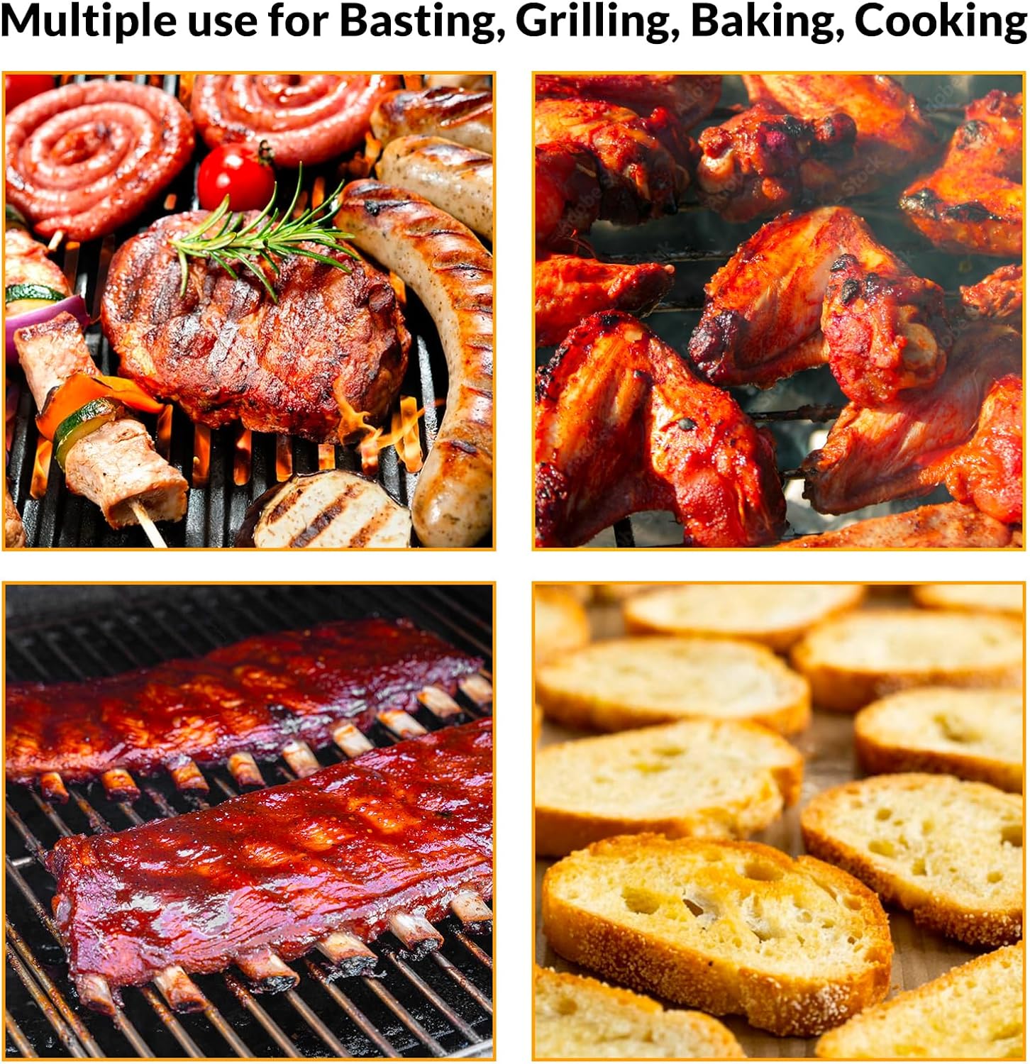 - Multiple Culinary Application: 37 oz large capacity basting pot allows you to avoid refilling sauces frequently, holds enough sauce to do a good size meal without wasting. Great for basting ribs, beef, chicken, turkey, smoked salmon and a large amount of meat, brushing pastry, pizza, cookies, grilling vegetables. Ideal for small table top grill and large grilling/smoking party. This is the best basting pot to have outside for when you use sauces on meat, make your outdoor cooking experiences more enjoyable.