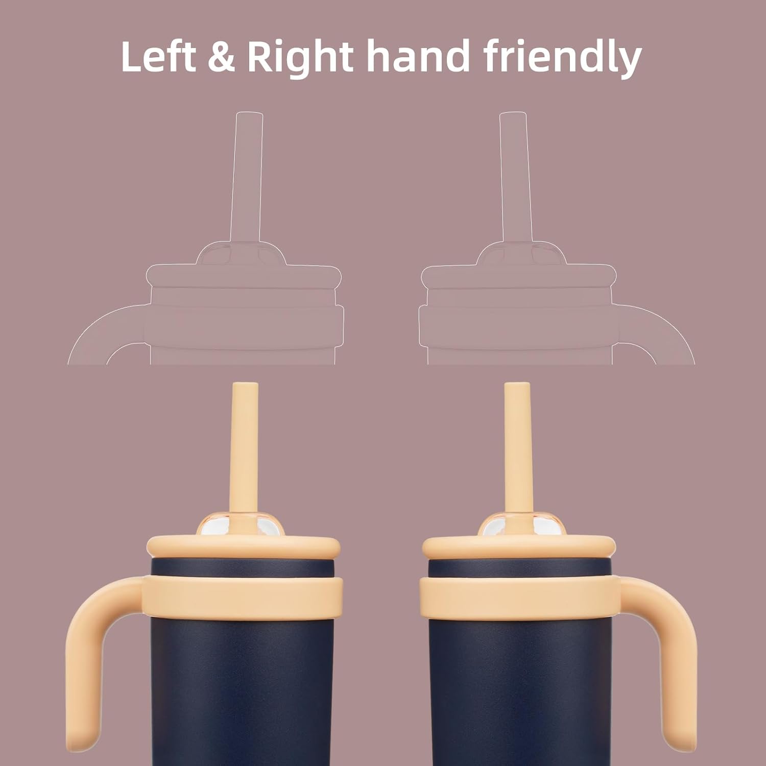 18 oz Tumbler with Side Handle, Insulated Water Bottle with Straw and 2 in 1 Lid, Stainless Steel Cup Travel Coffee Mug for Sports Office Gym,Navy Blue