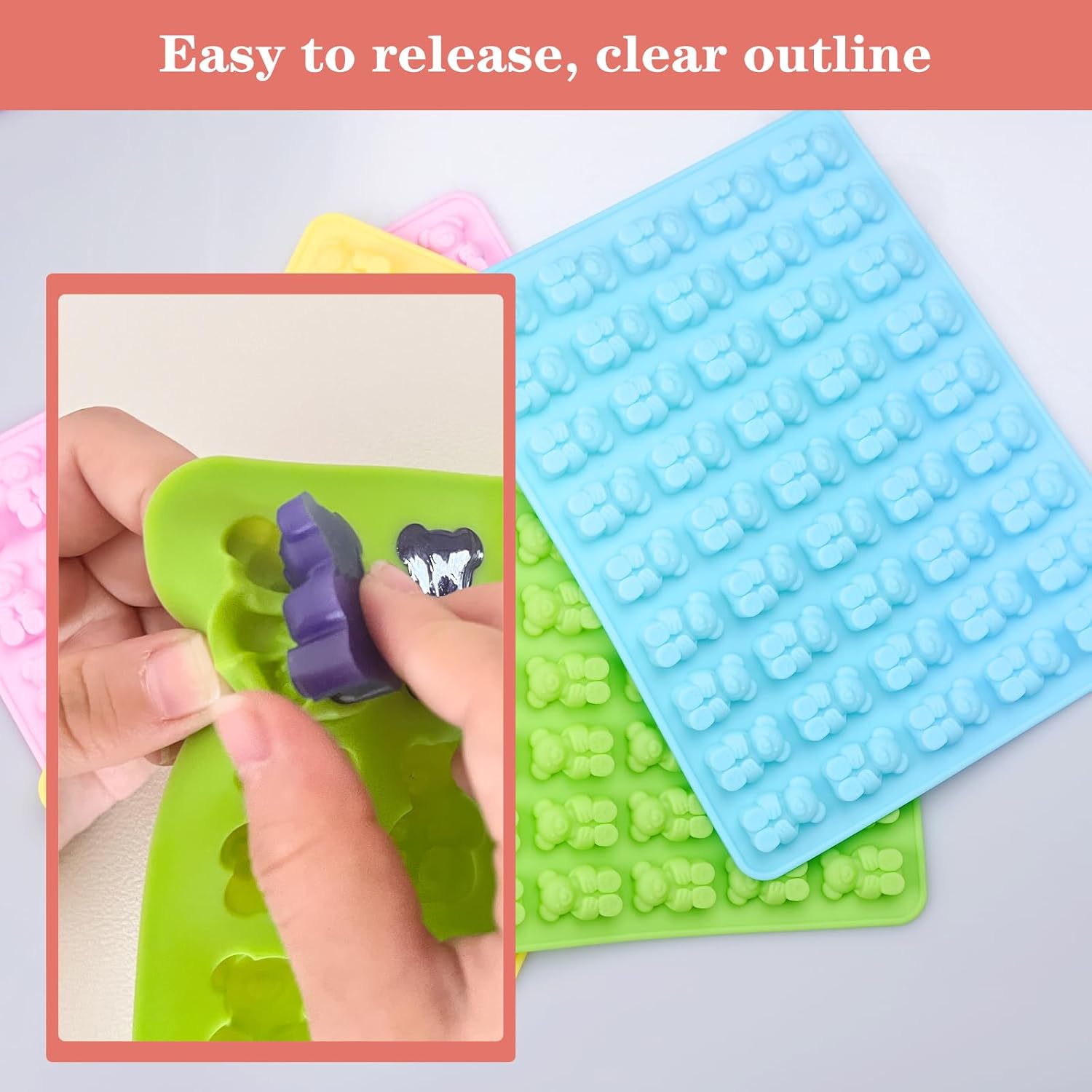 - With our gummy bear candy molds, you can easily take the gummy candies out of the molds, soft and non-sticky, reusable.Bear Gummy Candy Molds are so bright and special that you can find it in your cabinet at a glance.