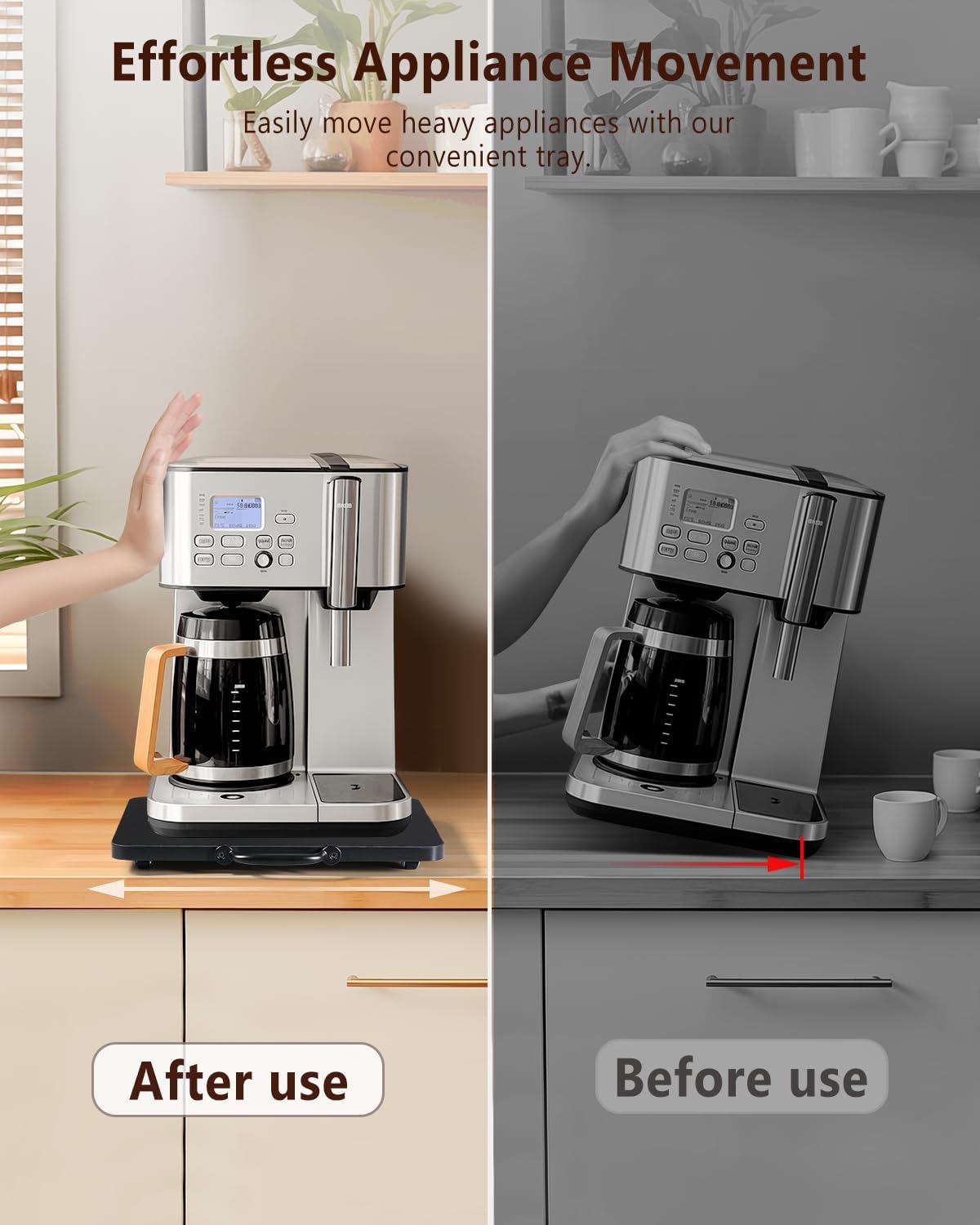 - Streamline Appliance Handling: Effortlessly move appliances with our Appliance Tray; equipped with appliance sliders for kitchen appliances; ideal as a coffee tray for countertop; ensures quiet, easy movement and a smoother kitchen experience