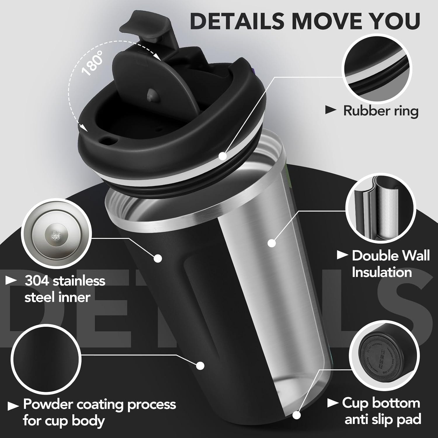 - 【Double Wall Vacuum Insulation】Our cups use double wall vacuum insulation technology to keep your favorite drinks at their ideal temperature for longer,keeping hot drinks warm for 6 hours and cold drinks cold for 12 hours.Allowing you to enjoy the best tasting coffee at any time of the day