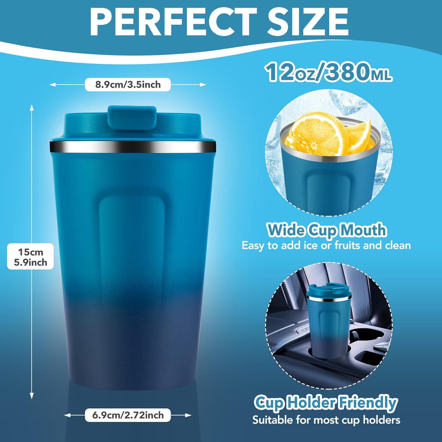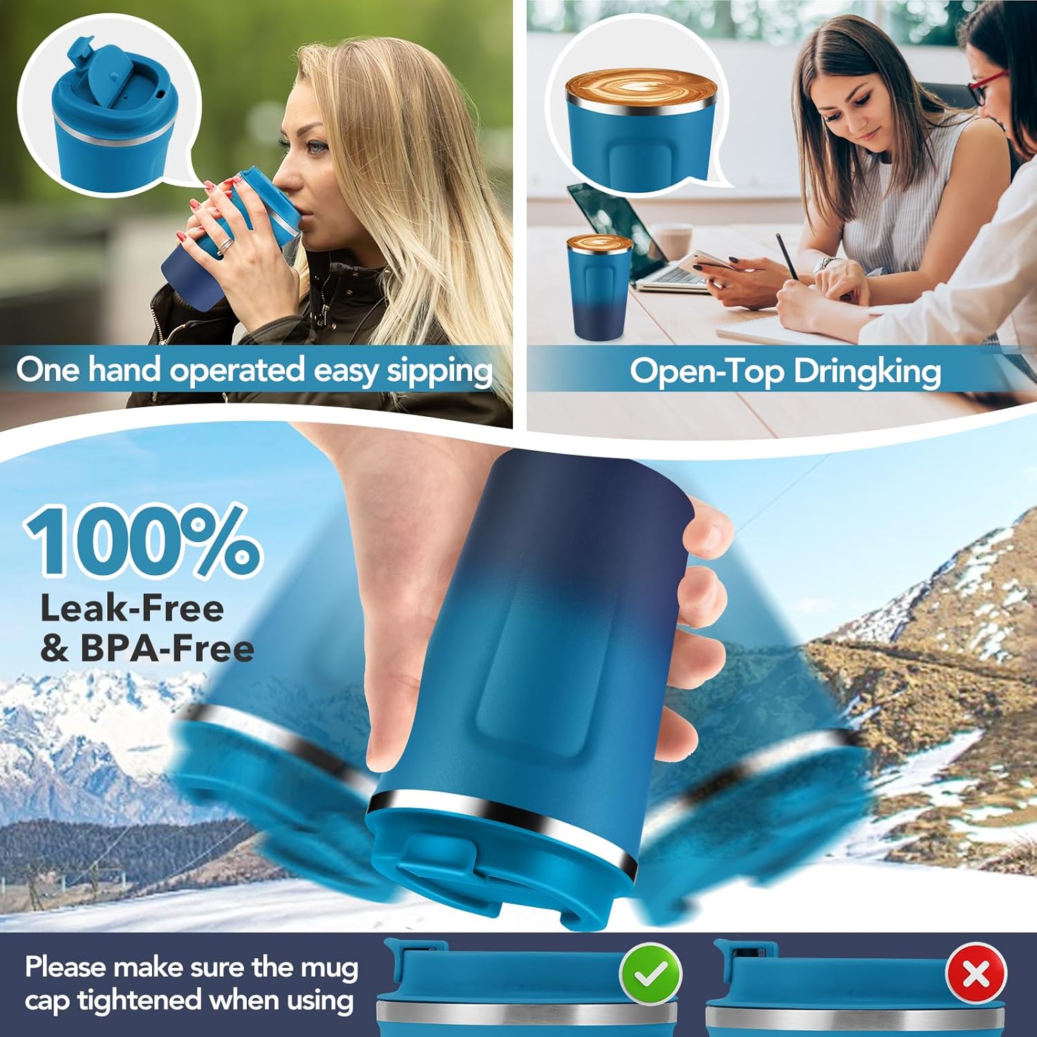 Volhoply 12 oz Double Wall Insulated Vacuum Travel Coffee Mugs with Flip Lid Bulk 2 Pack,Reusable Stainless Steel Leak Proof Coffee Cup,Portable Cafe Thermal Tumbler for Hot & Cold Drinks(Mix,2 Set)
