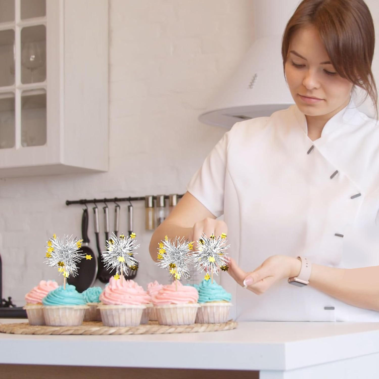 - Buy with Confidence ! Our foil firework cupcake toppers are intended for decoration only, please do not put them in oven or microwave. Please contact us in case of any problems, we will do all we can to make you satisfied.
