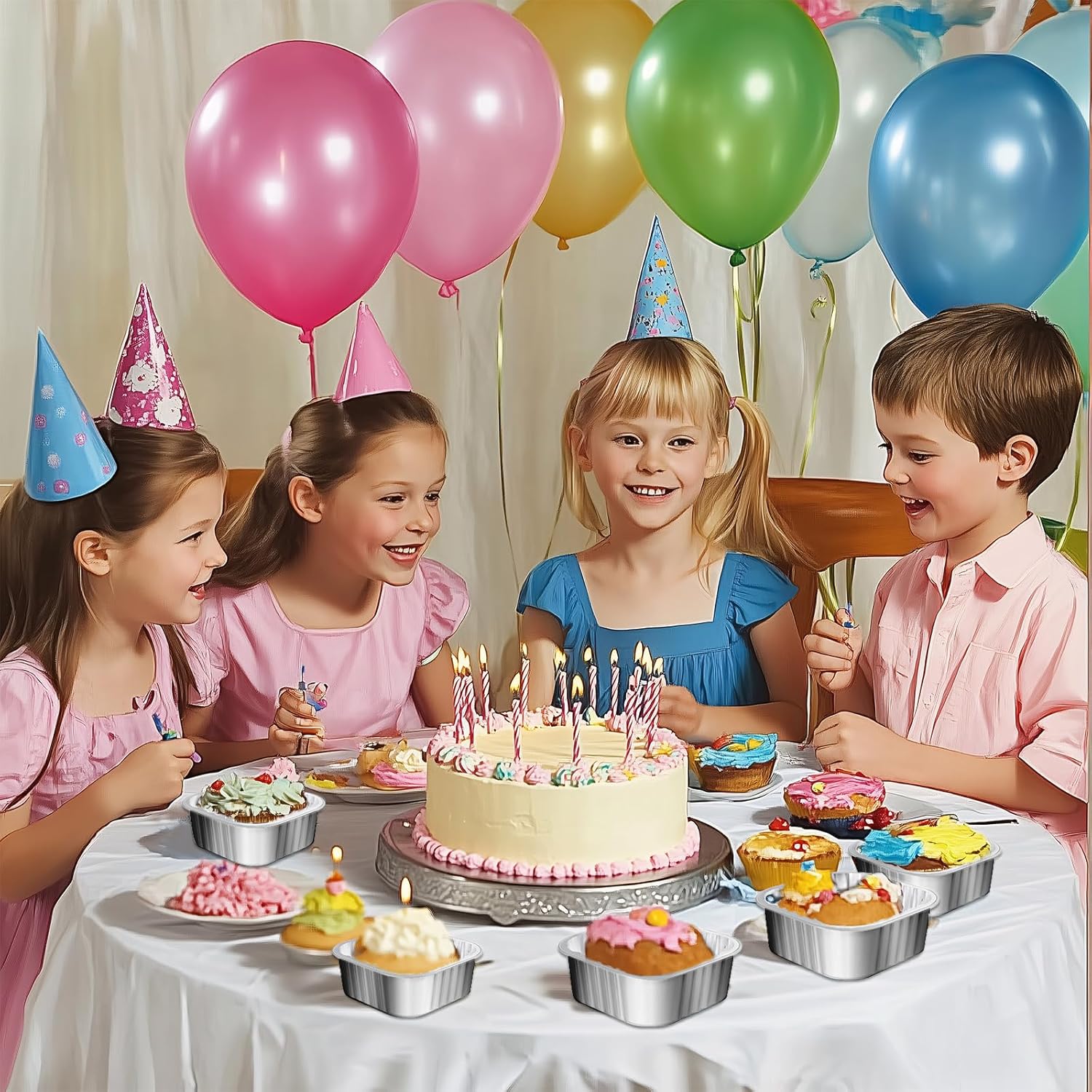 - Small Cake Pans with Lids:The aluminum foil cake pans can withstand a high temperature of about 220 degrees Celsius/ 428 degrees Fahrenheit, and they can be directly placed in microwave ovens, refrigerators and ovens, you can put them into the oven and take them out directly without a baking tray.Plastic Lid snaps on tight, keeping your goodies fresh in the refrigerator and makes transporting easy.With the spoons, it is very practical for entertaining guests and take away