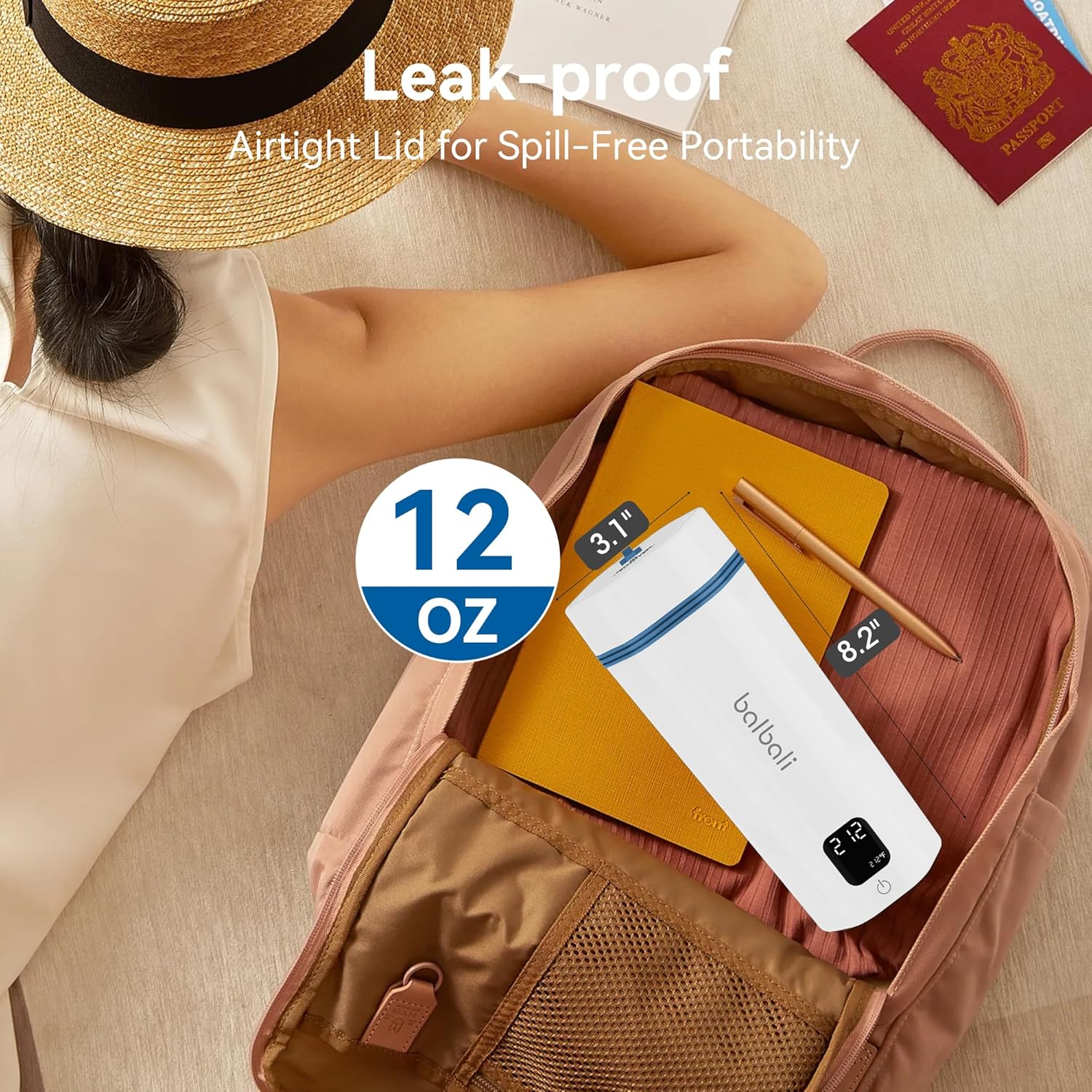 balbali Portable Tea Kettle for Travel 100-240V Dual Voltage - 6 Preset Electric Portable Water Heater for Boiling - Self Heating Cup/Thermos - 12oz Hot Water Boiler/Heater/Warmer - White