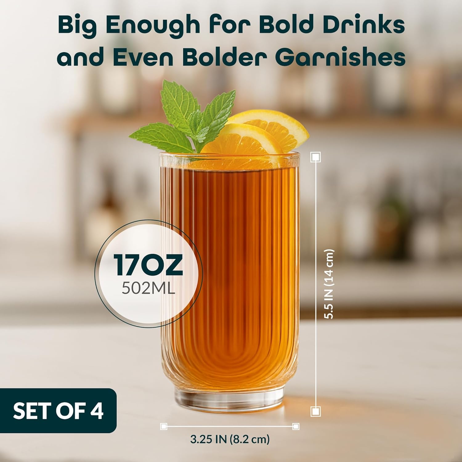 - VERSATILE: This set of 4 17oz capacity tumblers is perfect for a variety of drinks, including whiskey, cocktails, beer, wine, margaritas, iced tea, coffee, smoothies, and everyday beverages. These drinking glasses work for both casual dinners and elegant parties, making them a perfect addition to your vintage or modern drinkware collection.