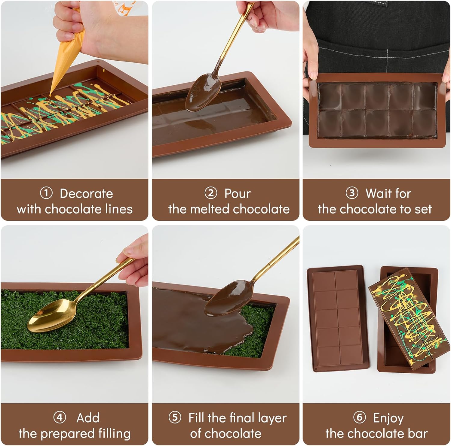 - Flexible & Nonstick: This big silicone chocolate bar mold is soft and flexible, have enough depth and non-stick surface for making chocolate bars, candy bars or stuffed foods, and can be easily removed without sticking or breaking