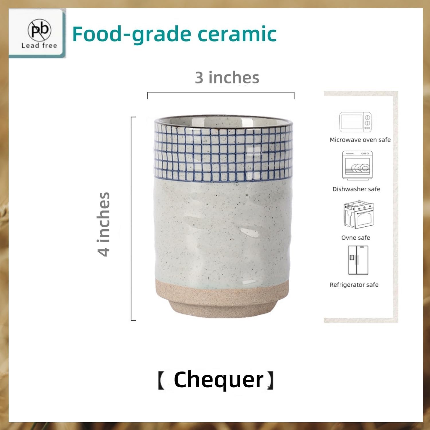 Stoneware Coffee Bar Utensil Holder Tea & Coffee Spoon & Stirrer Holder for Stir Stick Straw Teaspoon Holder Spoon Cup Small Utensil Jar (Blue Chequer)