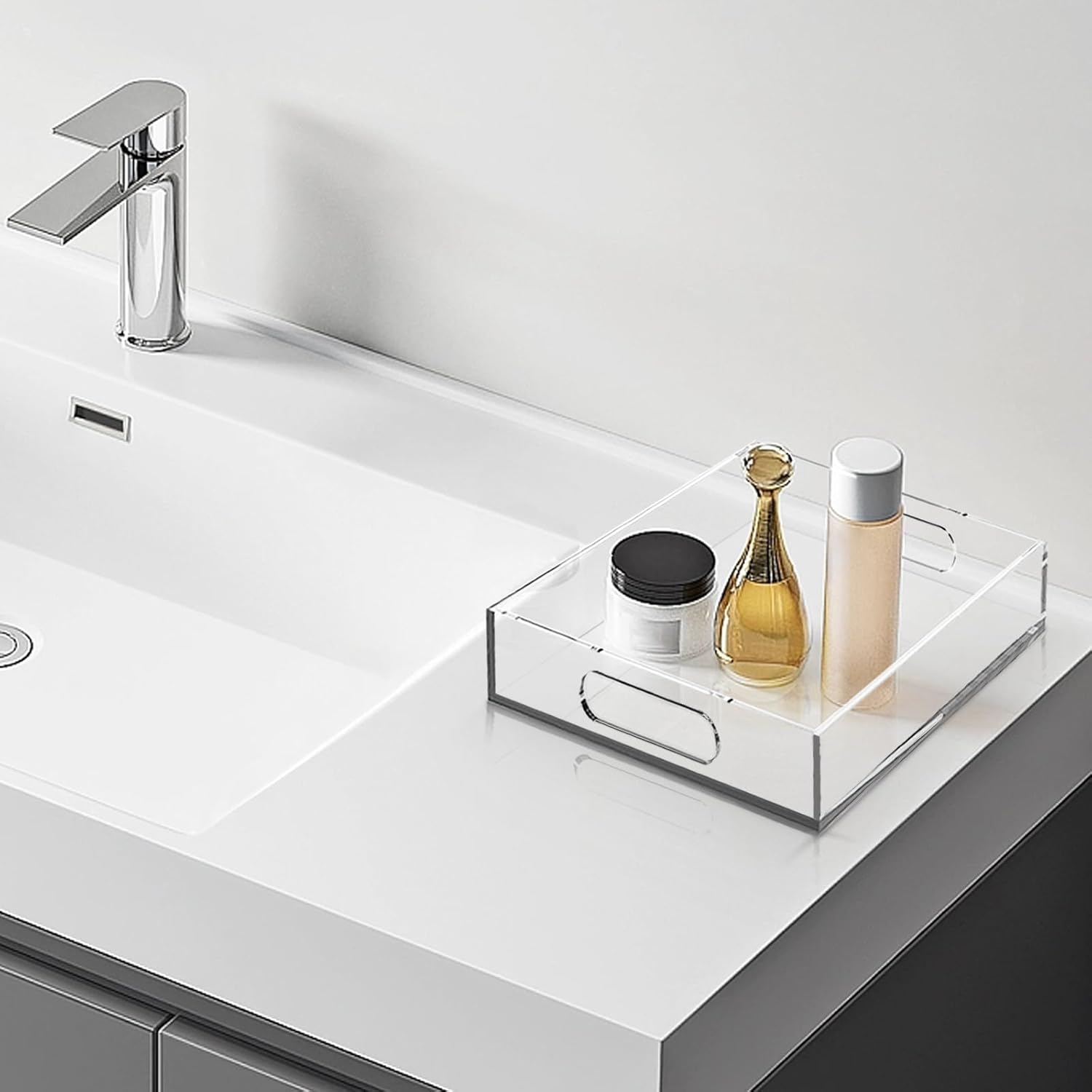 15 * 15 Acrylic Tray for Ottoman, Serving Tray with Handle, Lucite Tray Organizer for Bench, Coffee Table Countertop, Kitchen, Bathroom, Living Room, Powder Room