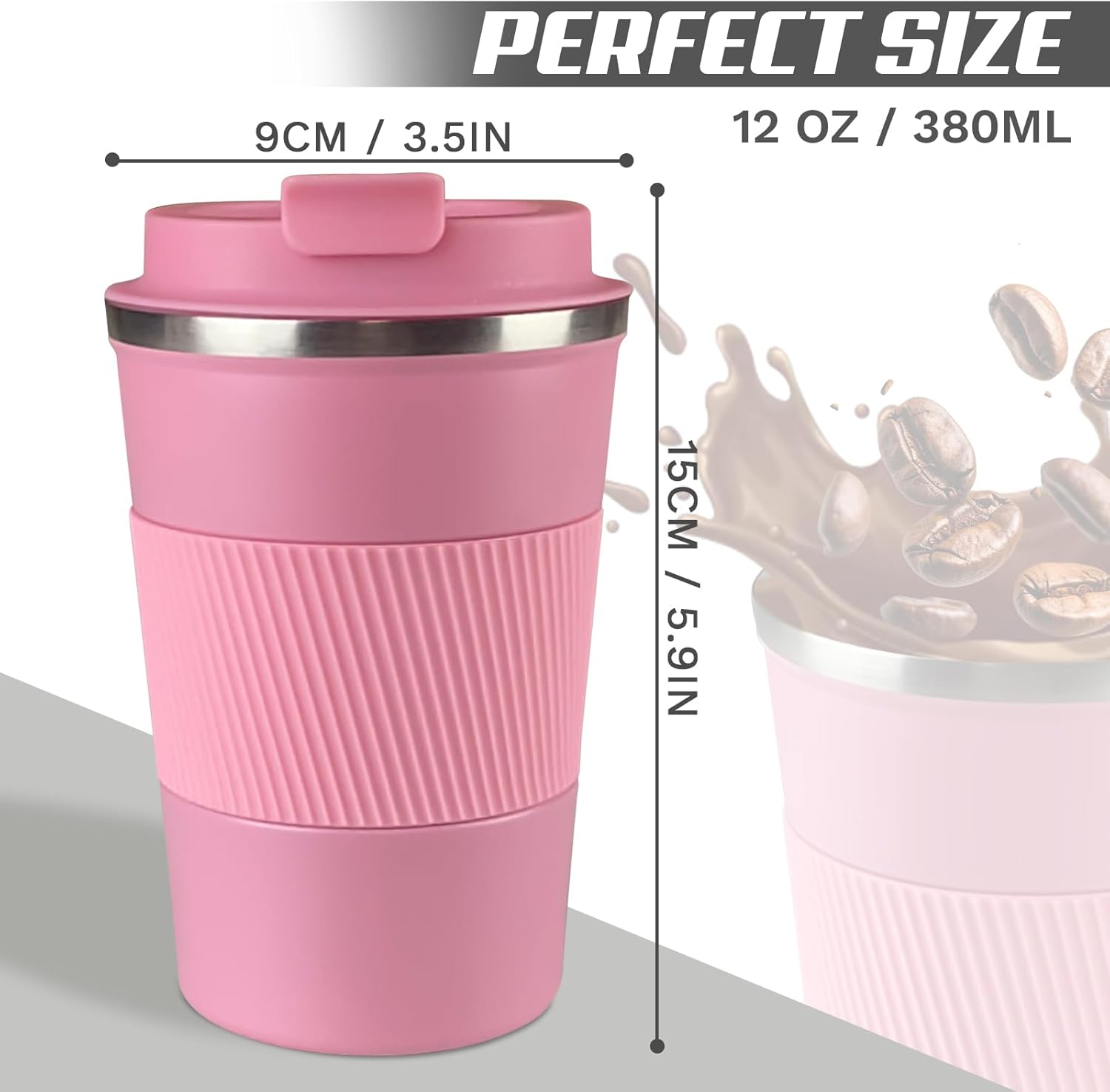 Vacuum-Insulated Stainless Steel Travel Coffee Mug, Leak-Proof Reusable Coffee Cup with Lid - Keep Hot & Cold Drinks for Hours, Durable Thermos Tumbler for Men & Women (3rd-Pink, 12OZ)