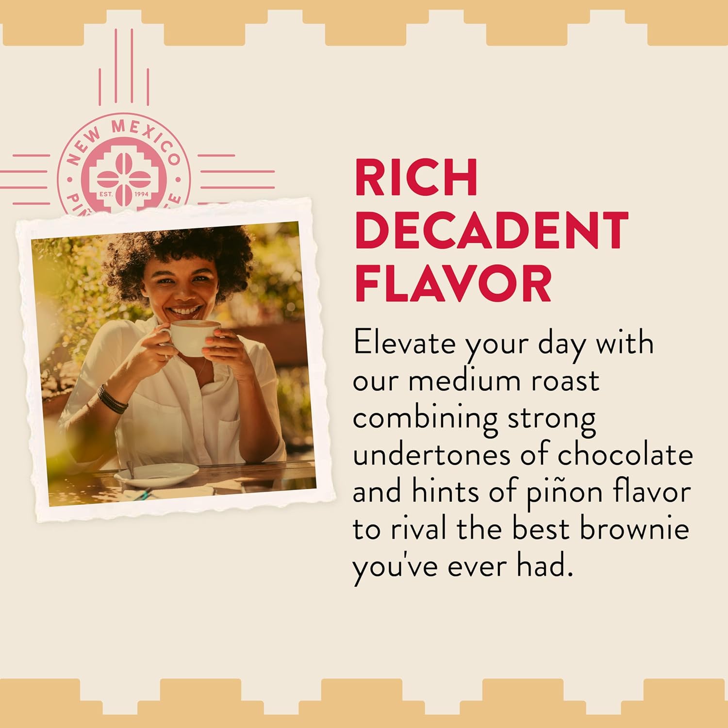 - RICH DECADENT FLAVOR - Elevate your day with our unique medium roast coffee combining strong undertones of chocolate and hints of piñon flavor, perfect to enjoy your coffee black, or with your favorite cream and sugar.