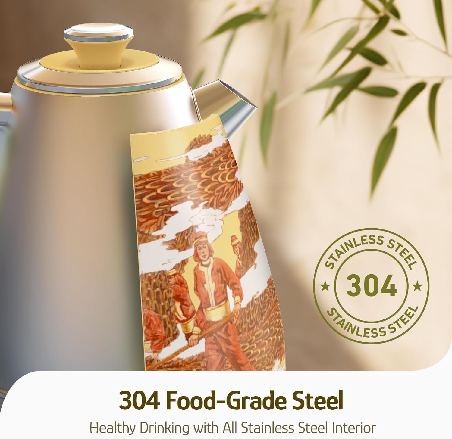 - All Stainless Steel: This retro electric kettle is crafted with food-grade 304 stainless steel in its interior, lid, and filter. It has no plastic in contact with the water, providing you and your family with BPA-free healthy drinking.