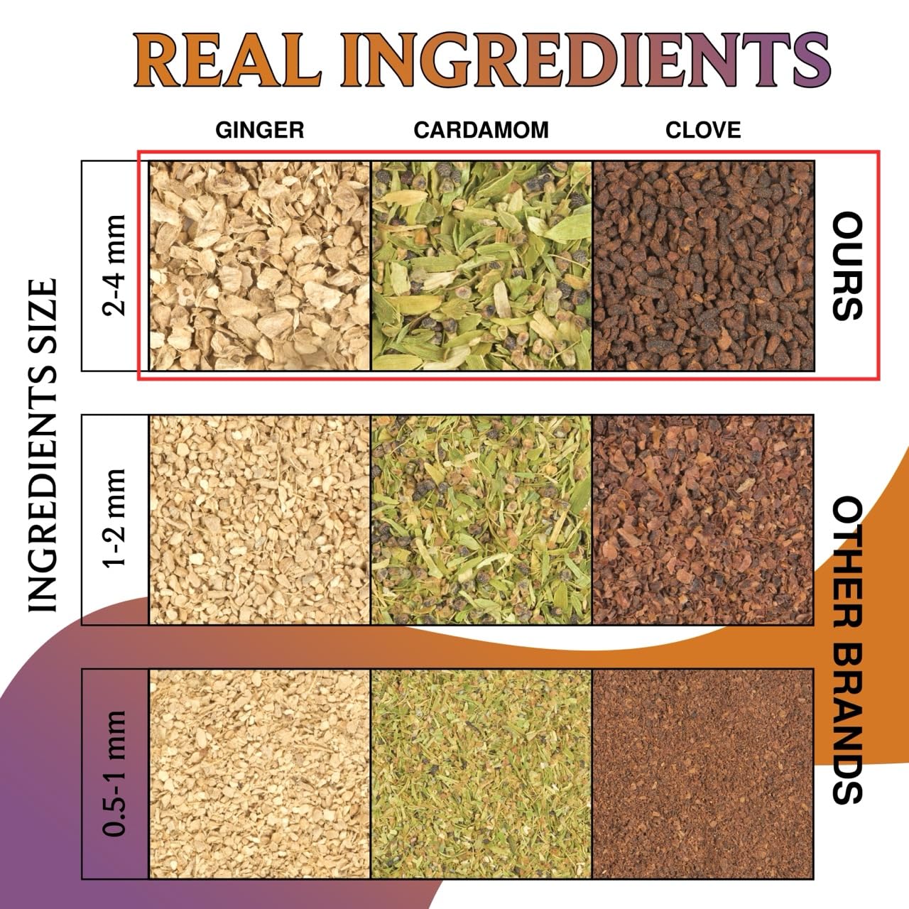 - PURE INGREDIENTS - our blends are made using ingredients of the highest grade ensuring a consistent brew and an intense colour when brewed. Herbs and spices used in the blends are of the highest quality and are procured from local farmers to ensure freshness and fair price.