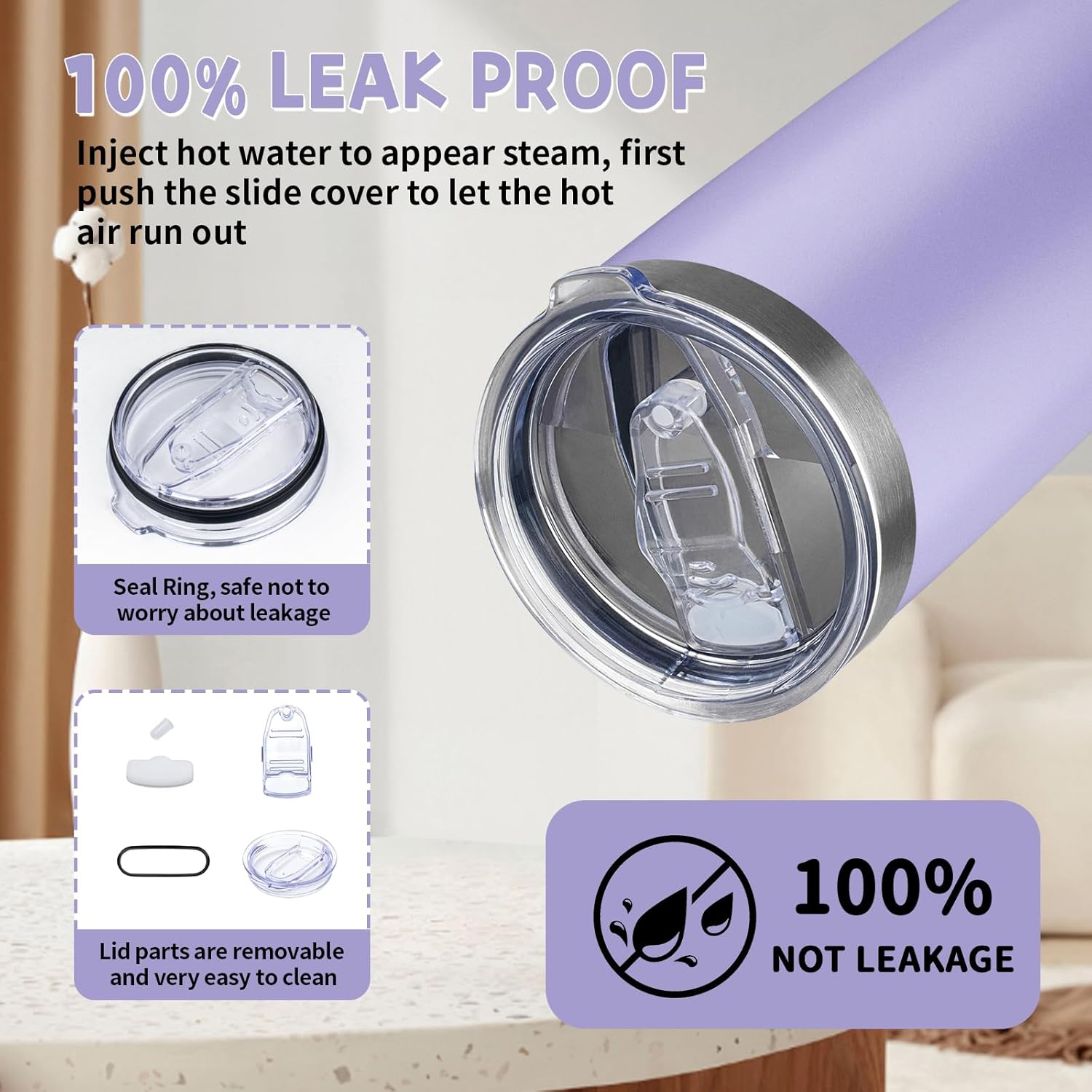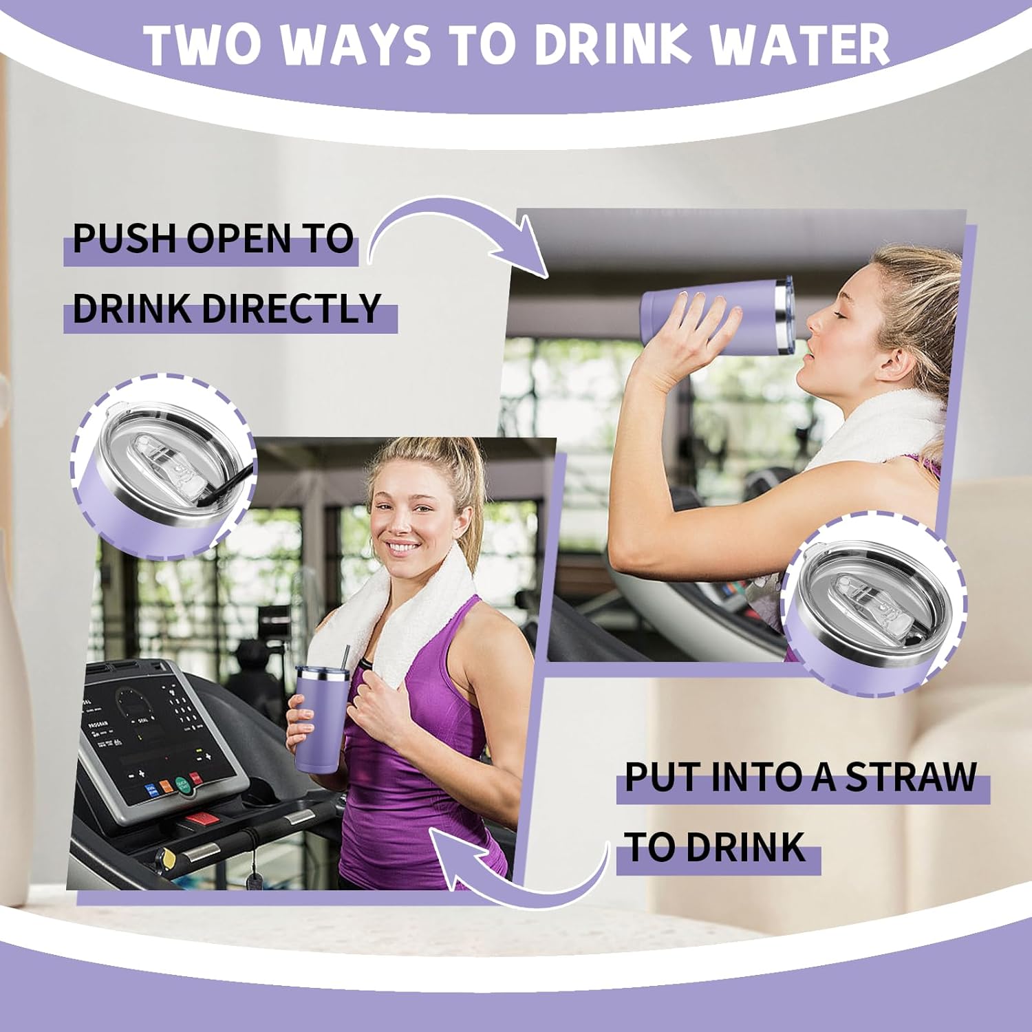 20 oz Tumbler with Lids and Straws, Stainless Steel Insulated Coffee Tumbler, Double Wall Vacuum Insulated Travel Mug Cup, Leakproof Thermal Coffee Cup for Hot and Cold Drinks (light purple)